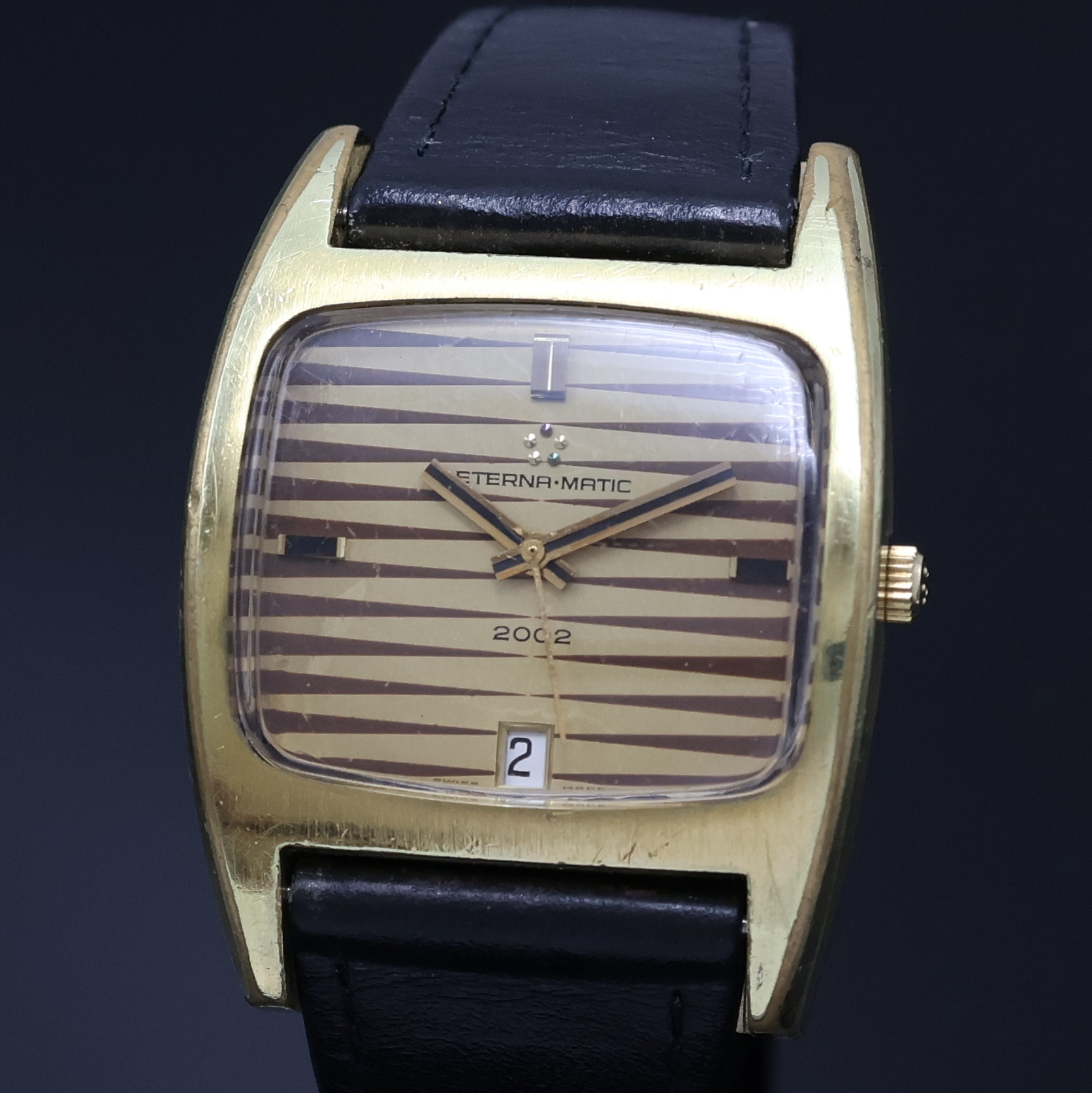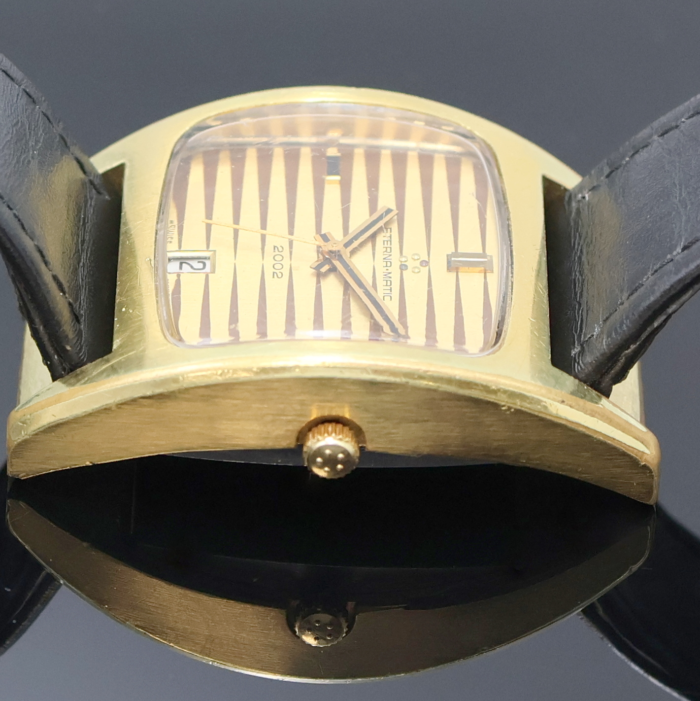 ETERNA-MATIC 2002 vergoldete Armbanduhr, Automatik, Schweiz um 1972, in sich gewölbtes,