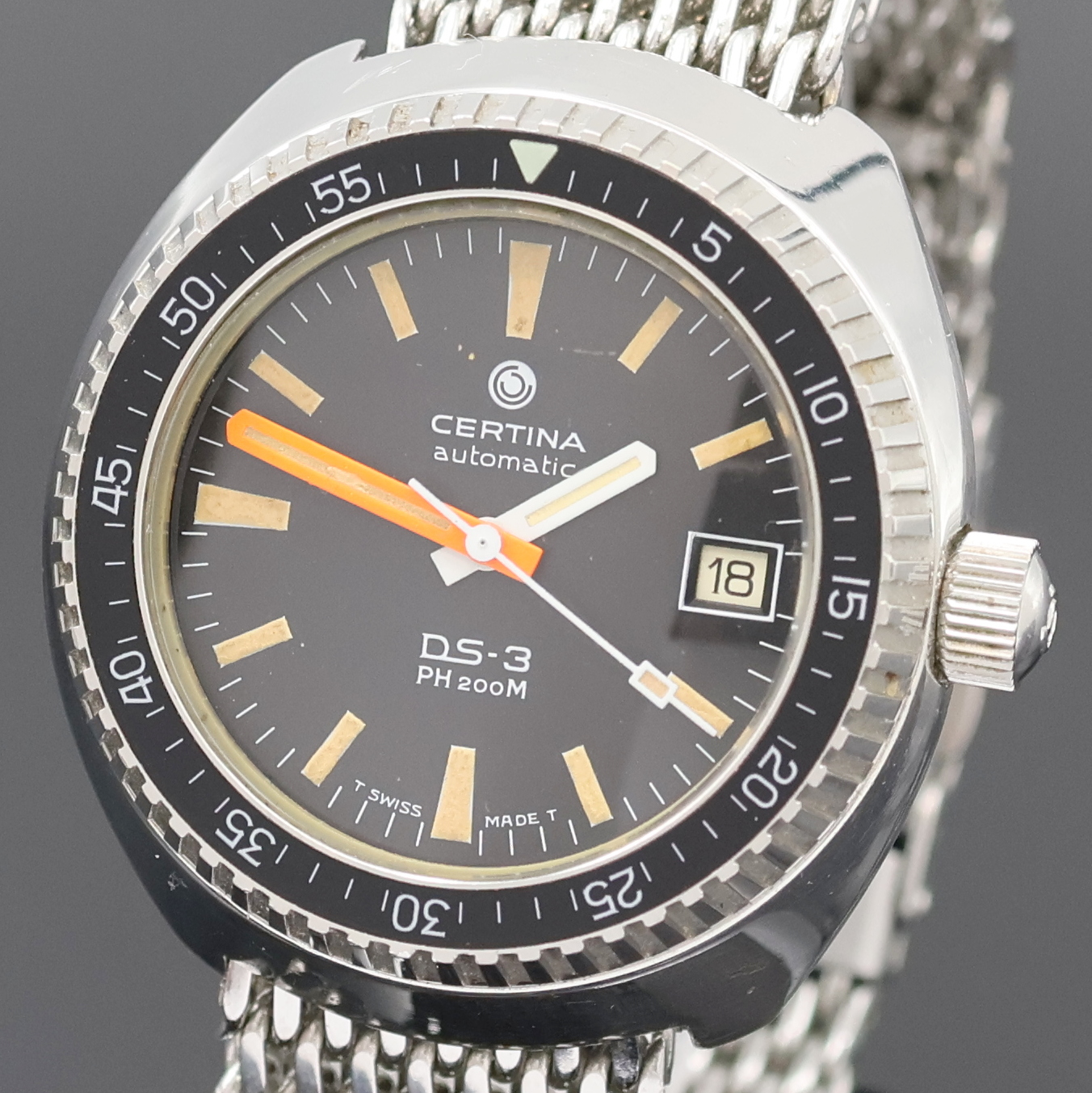CERTINA DS-3 PH 200M Taucheruhr in Edelstahl, Automatik, Schweiz um 1977, massives