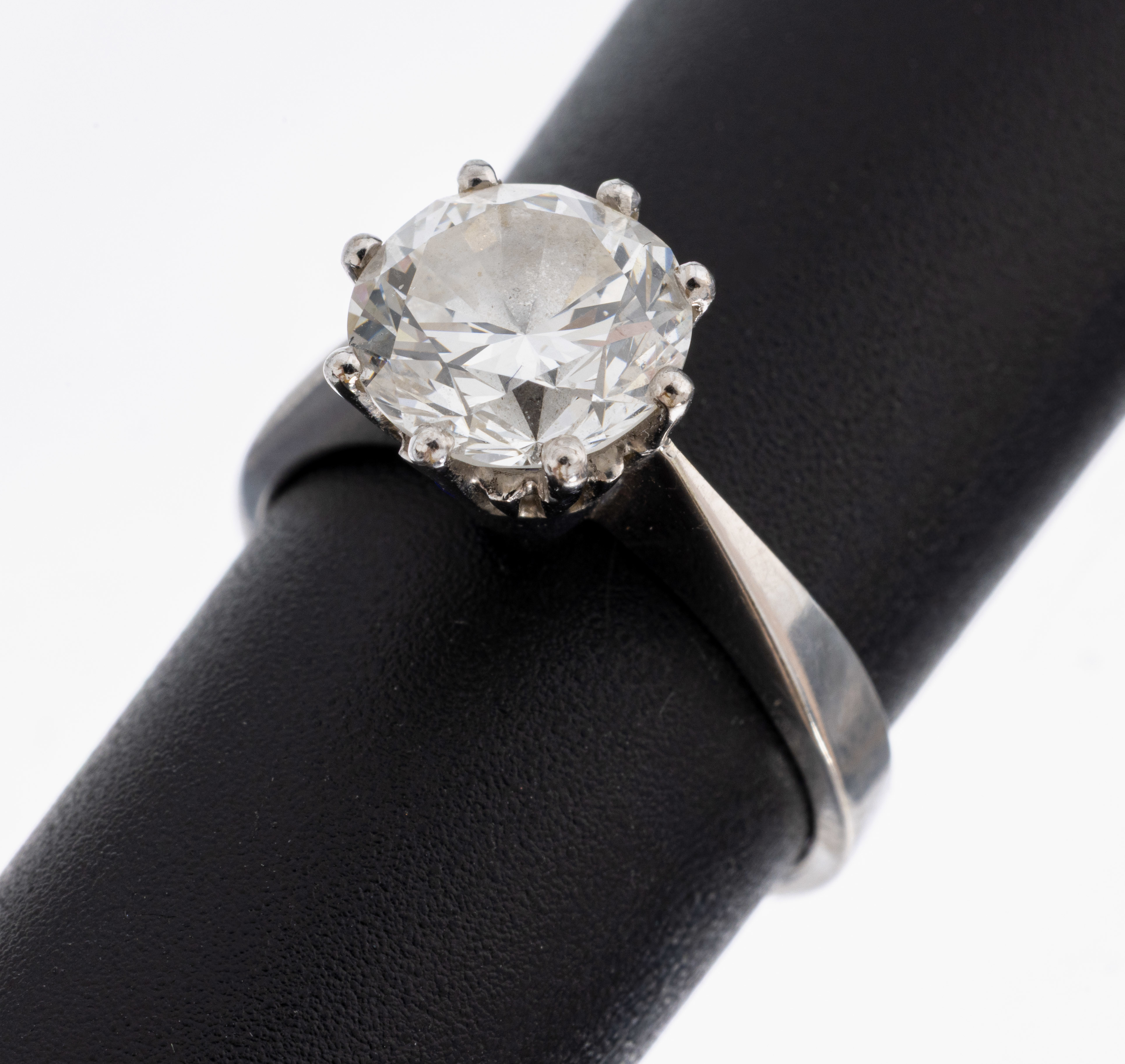 18 kt Gold Brillant-Ring, WG 750/000, Brillant ca. 2.12 ct (grav.) Weiß/si, RW 50,