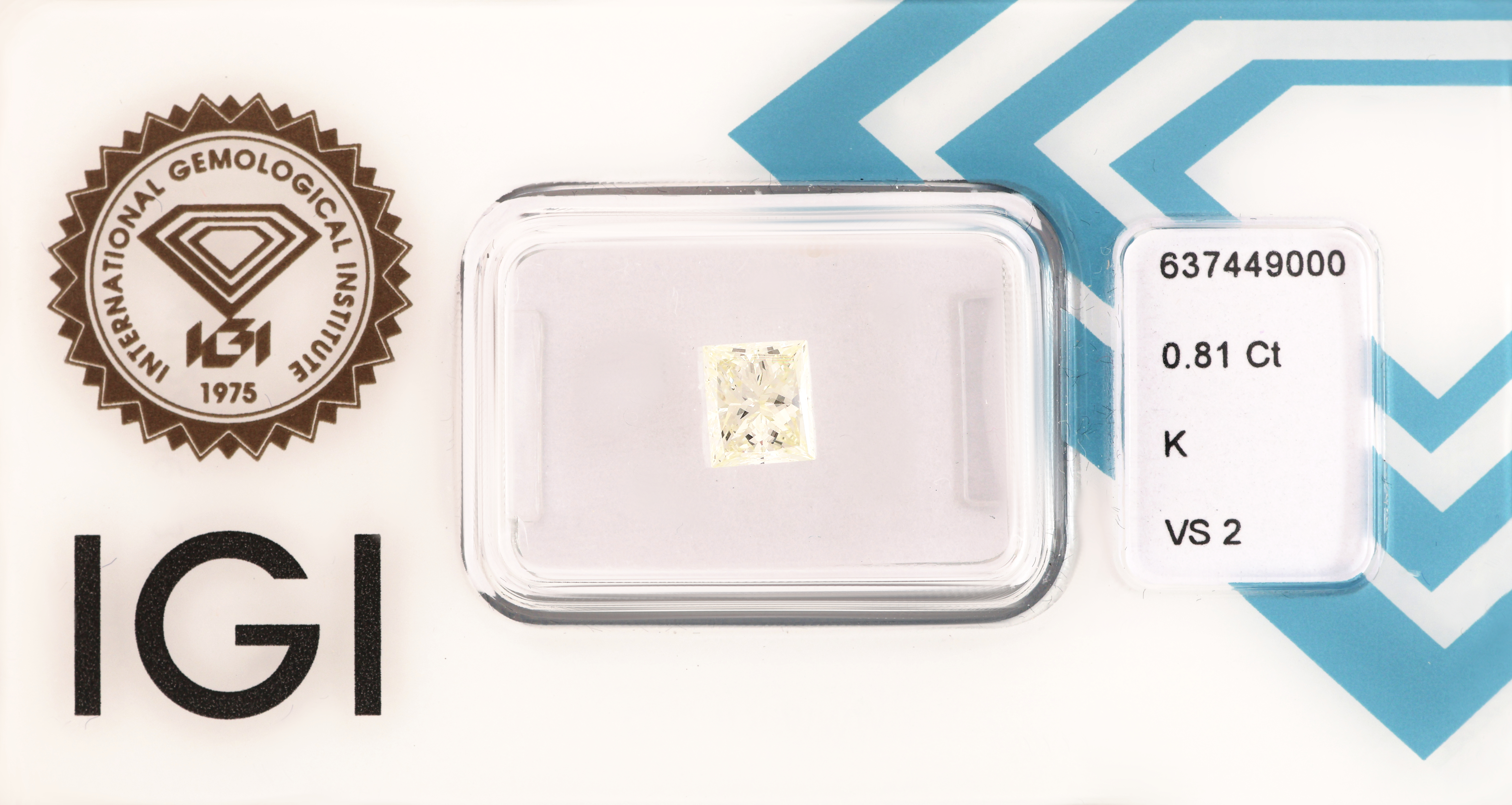 Loser Princess Cut Diamant, 0.81 ct get.Weiß(K)/vs2, eingeschweißt, mit IGI- Expertise