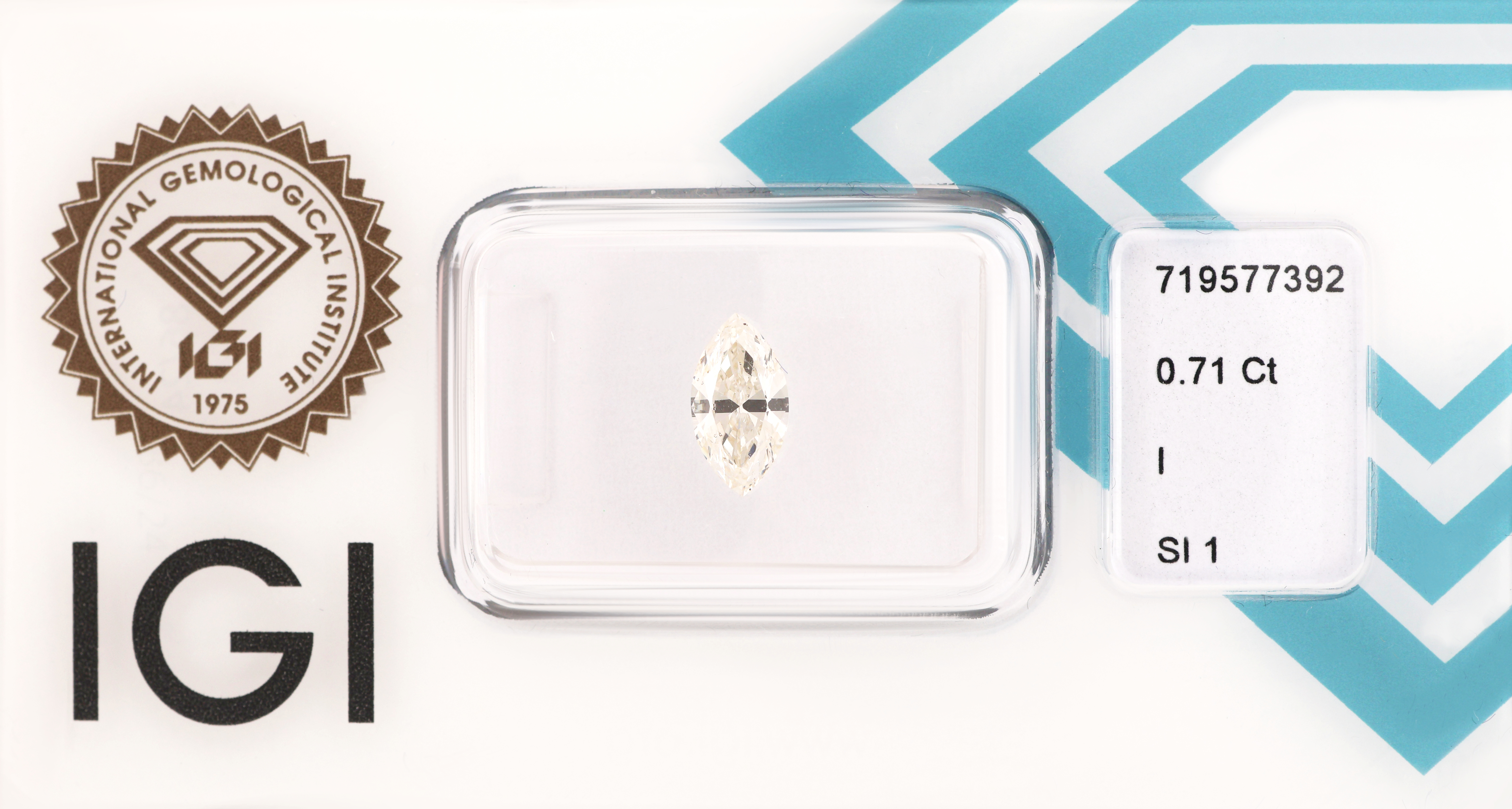 Loser Diamant-Navette, 0.71 ct l.get.Weiß(I)/si1, eingeschweißt, mit IGI -Expertise