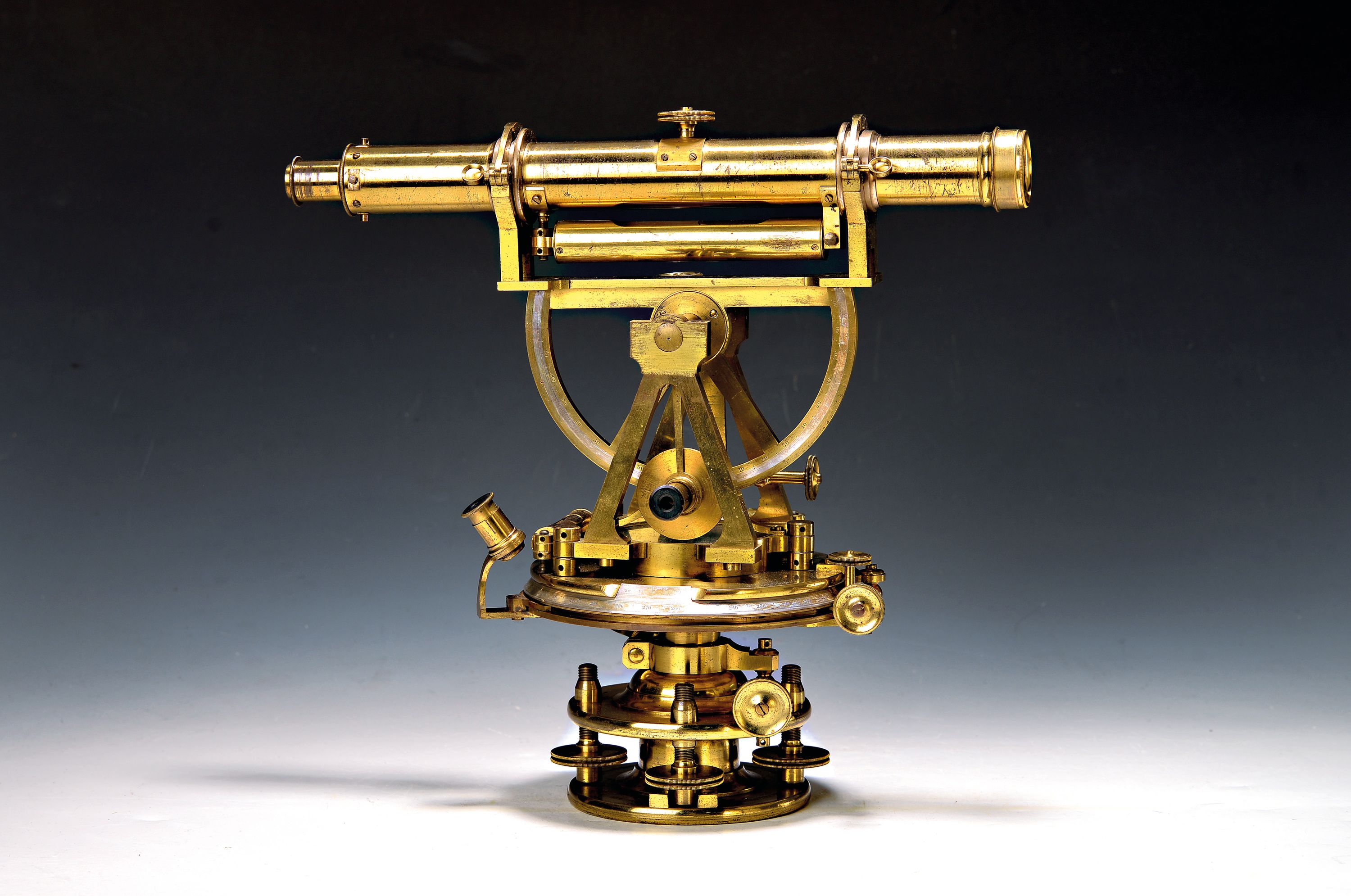 Theodolith, England, 2. Hälfte 19. Jh., Messing, z.T. versilberter Ziffernring.