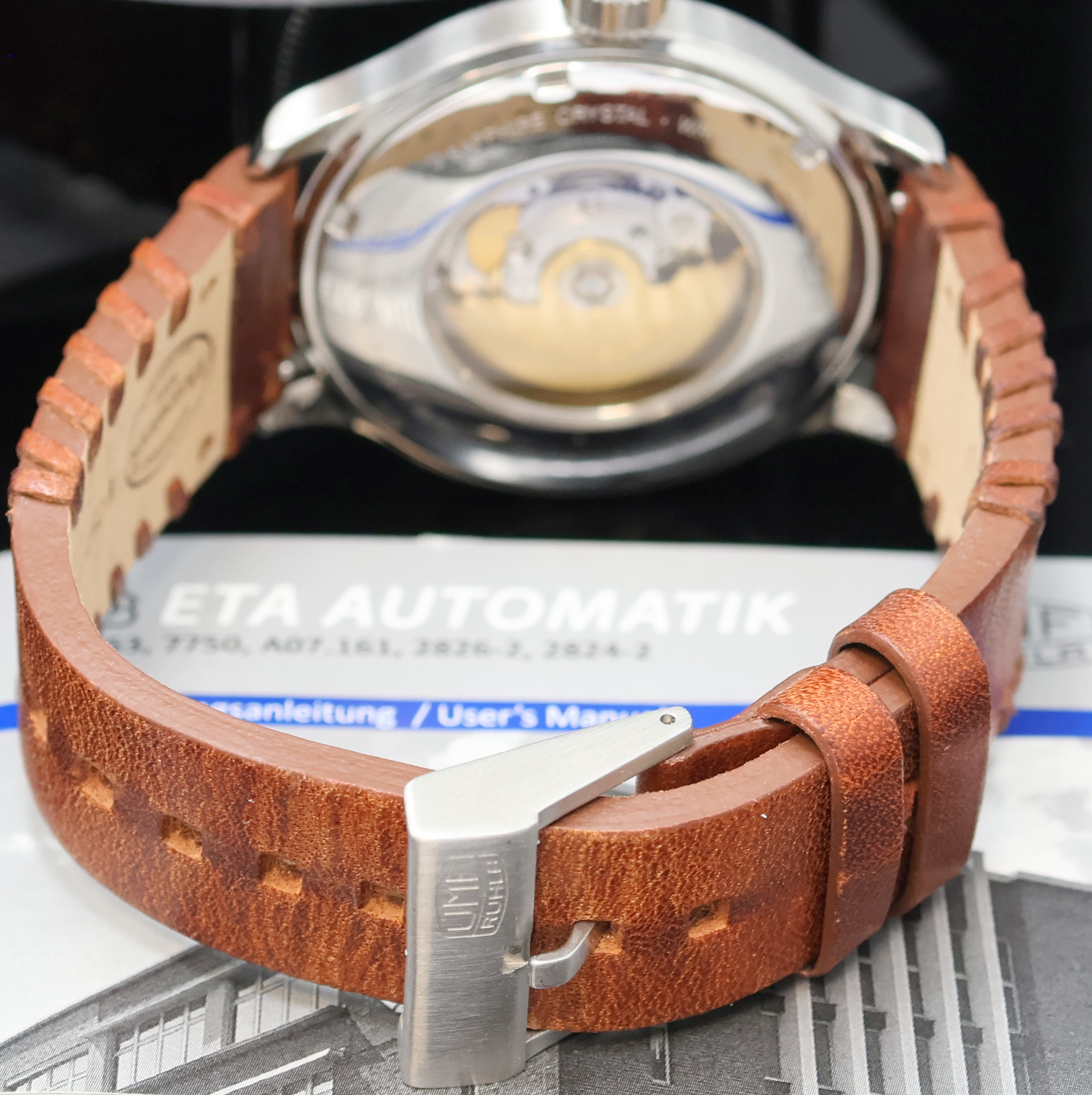 Automatik, beids. vergl. Edelstahlgeh. inkl. orig. Lederband m. orig. Dornschl.,