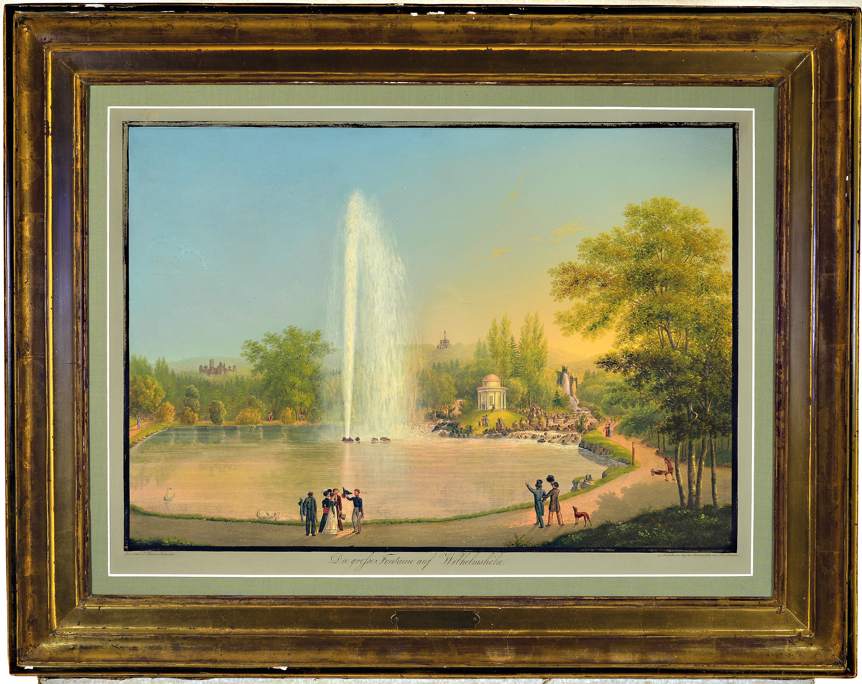 Cassel), feine Malerei, verschiedene Personen um, die große Fontaine gruppiert,