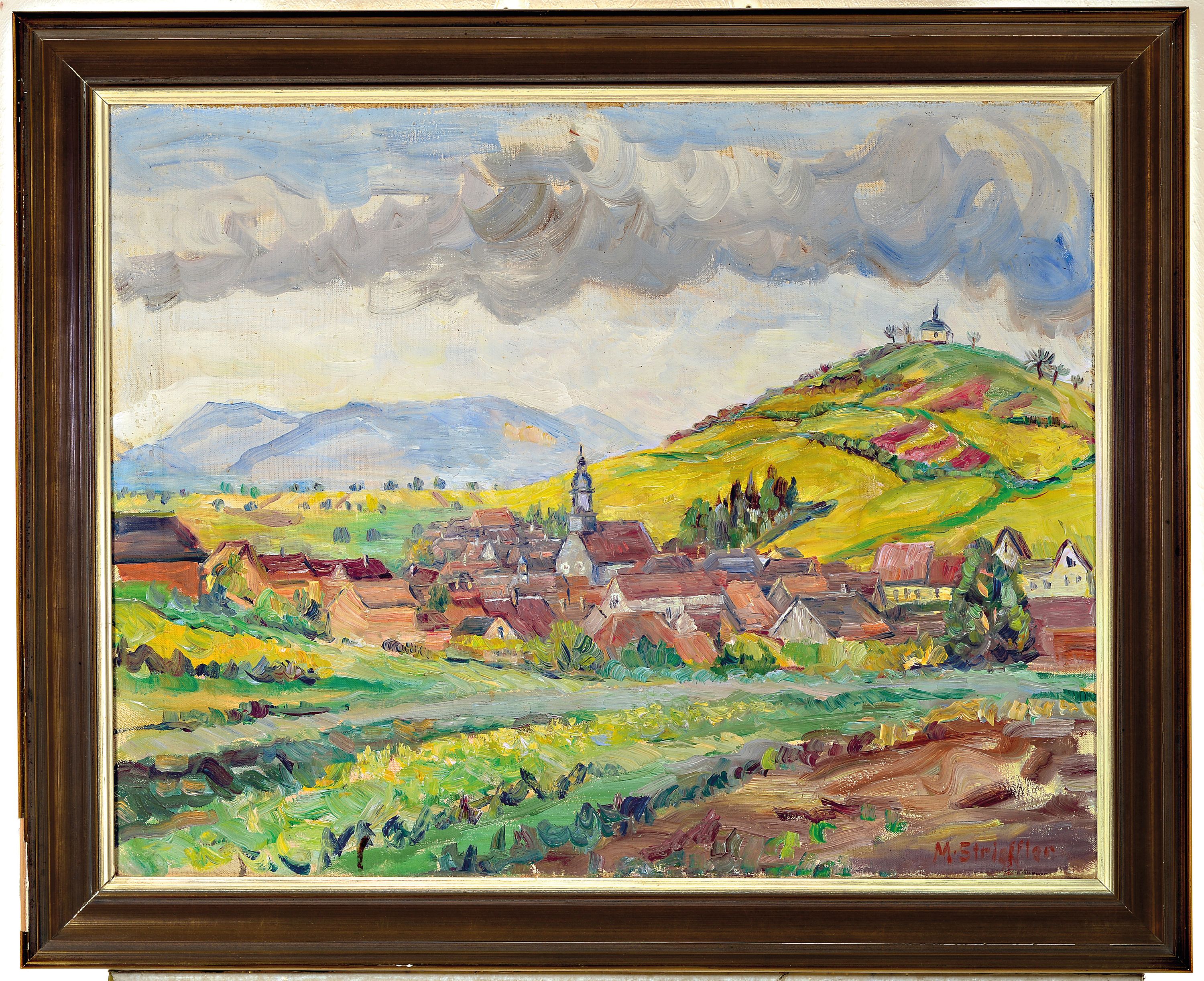 Marie Strieffler, 1917-1987 Landau, Blick auf die kleine Kalmit und Ilbesheim, Öl/Lwd,