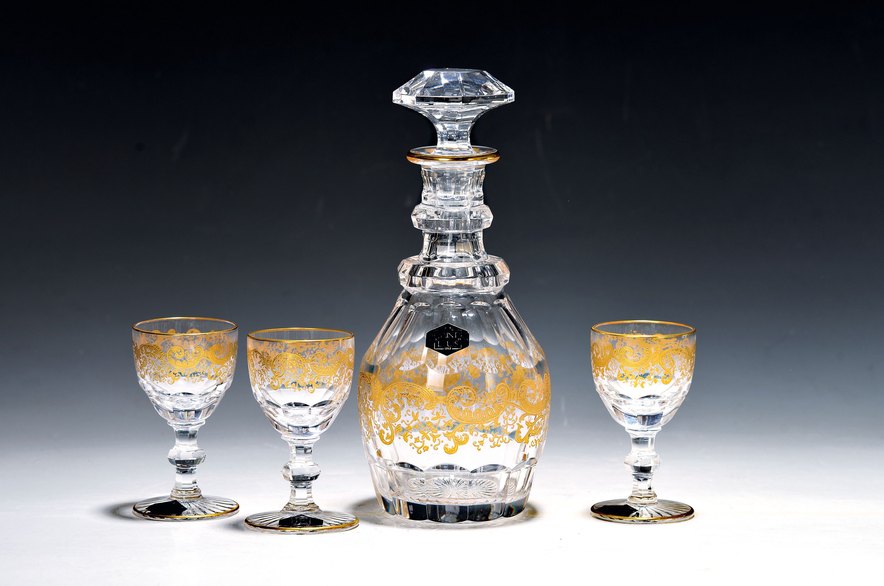 Karaffe mit 6 Gläsern, St. Louis, Modell Rocaille Gold, farbloses Kristallglas,