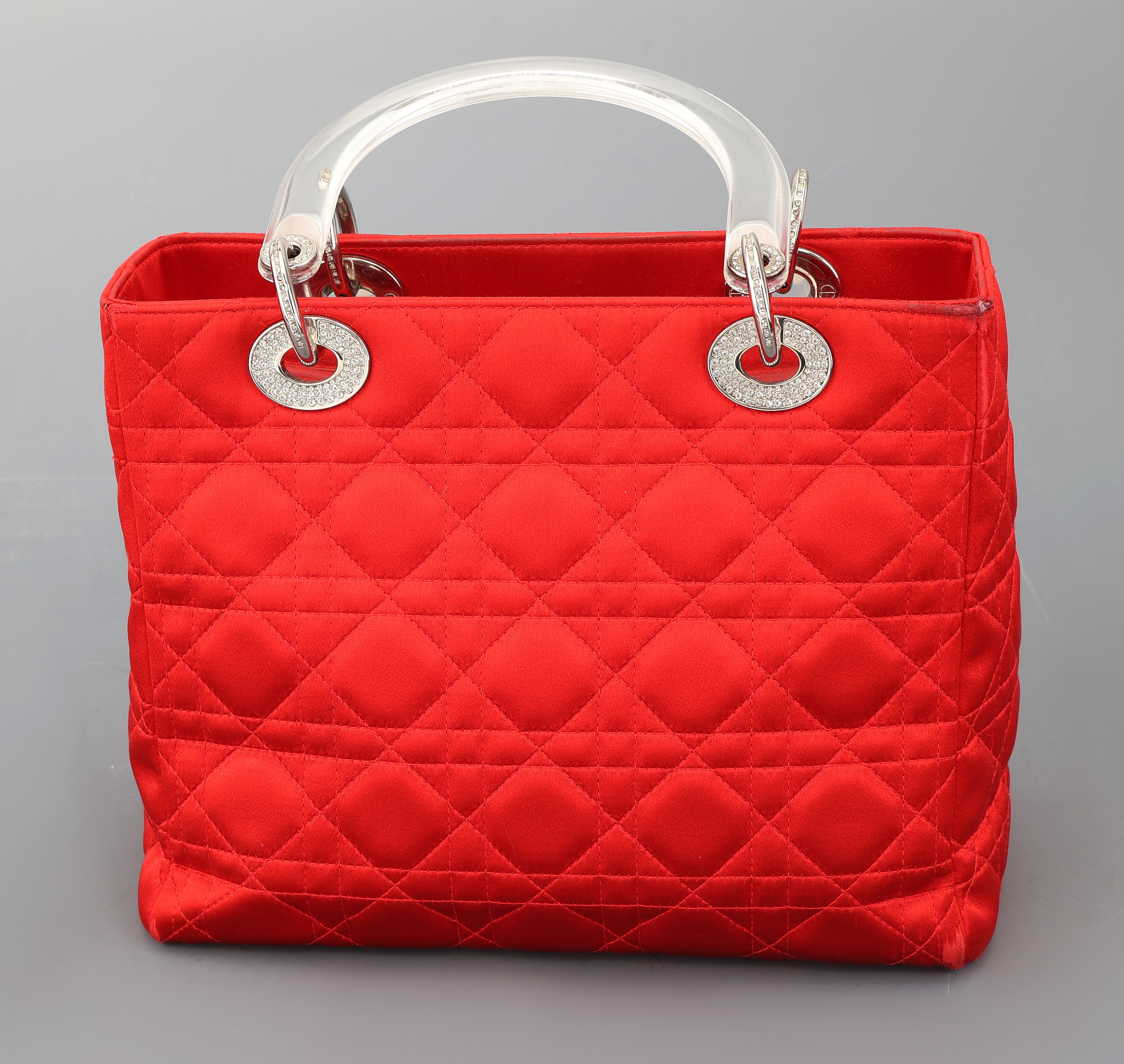 CHRISTIAN DIOR Handtasche, LADY DIOR 25 in gestepptem rotem Seidensatin mit Cannage-