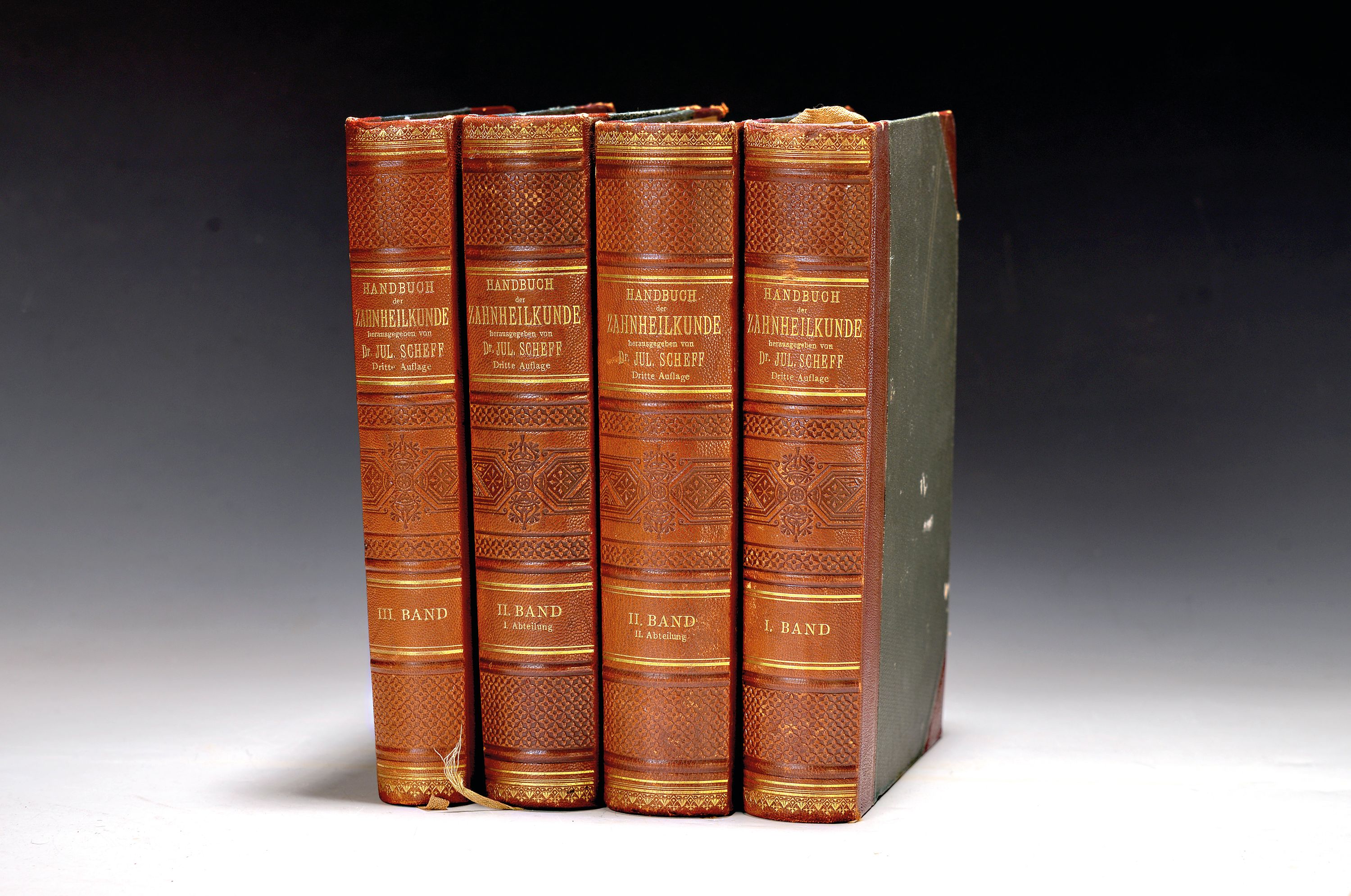 Dr. Julius Scheff (1824-1919): Handbuch der Zahnheilkunde, 4 Bd., Wien/Leipzig, Alfred