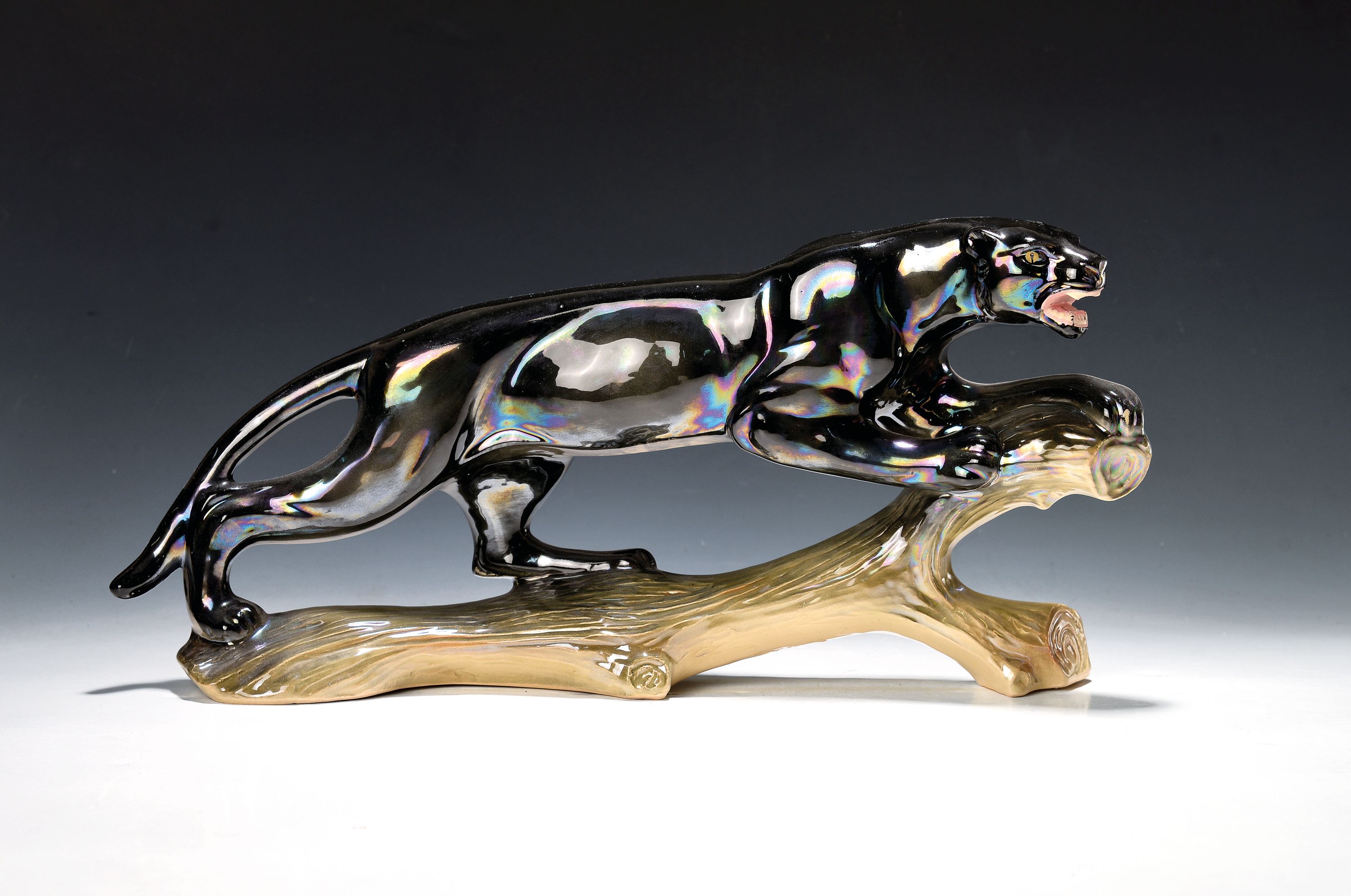 Keramikskulptur Panther, Jema, Holland, Anfang 20.Jh, Keramik, farbig und lüstrierend