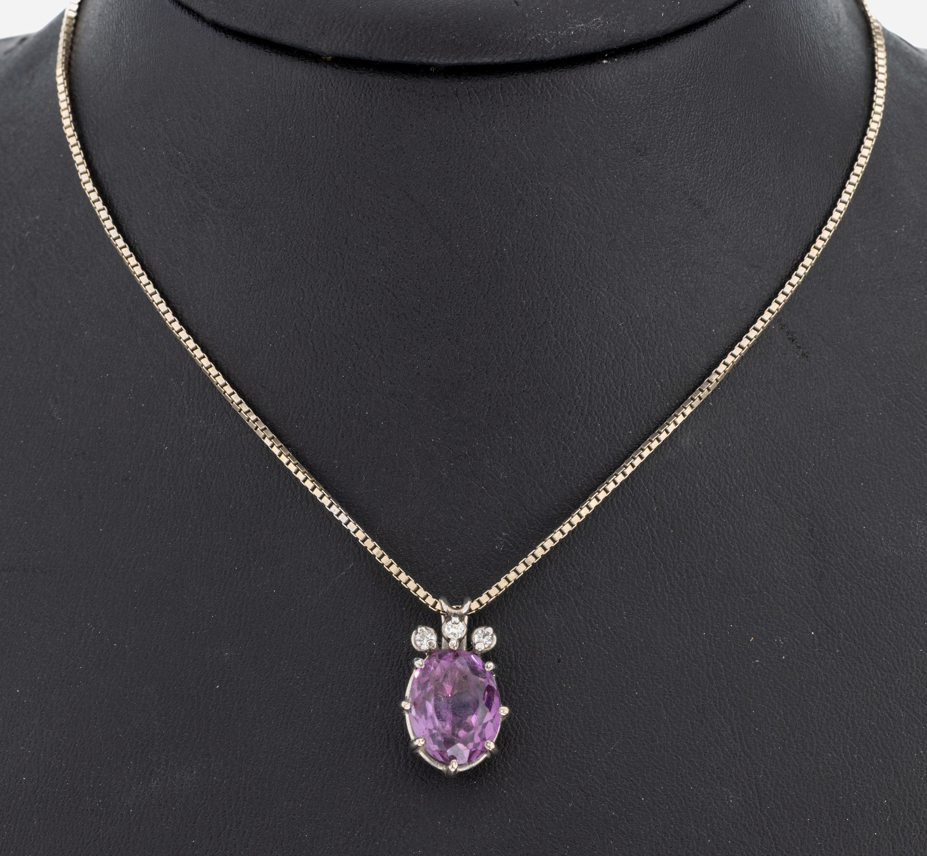 14 kt Gold Amethyst-Brillant-Anhänger, WG 585/000 gepr., ovalfacett. Amethyst ca.