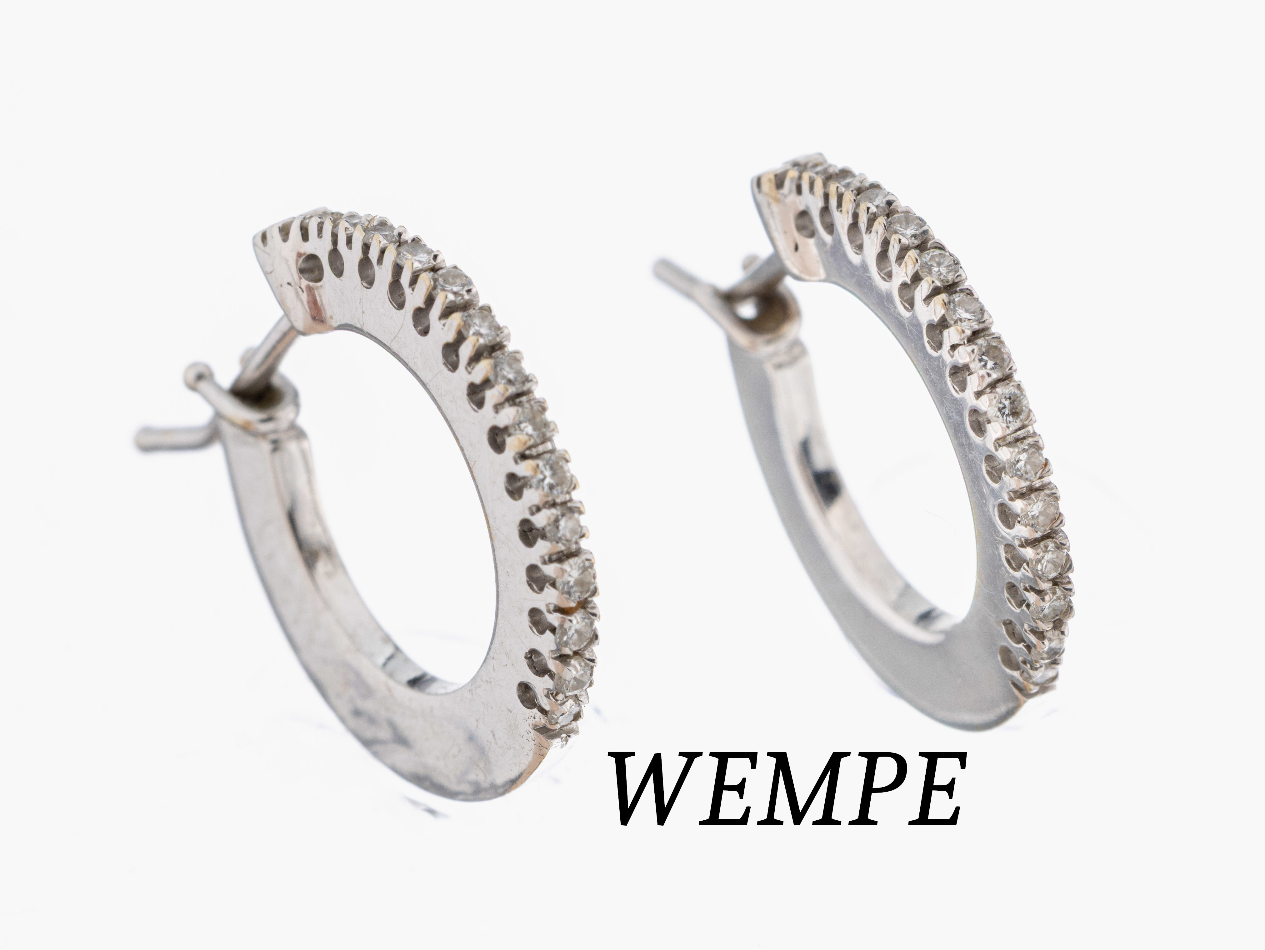 Paar 18 kt Gold WEMPE Brillant-Creolen, WG 750/000, 28 Brillanten zus. ca. 0.14 ct