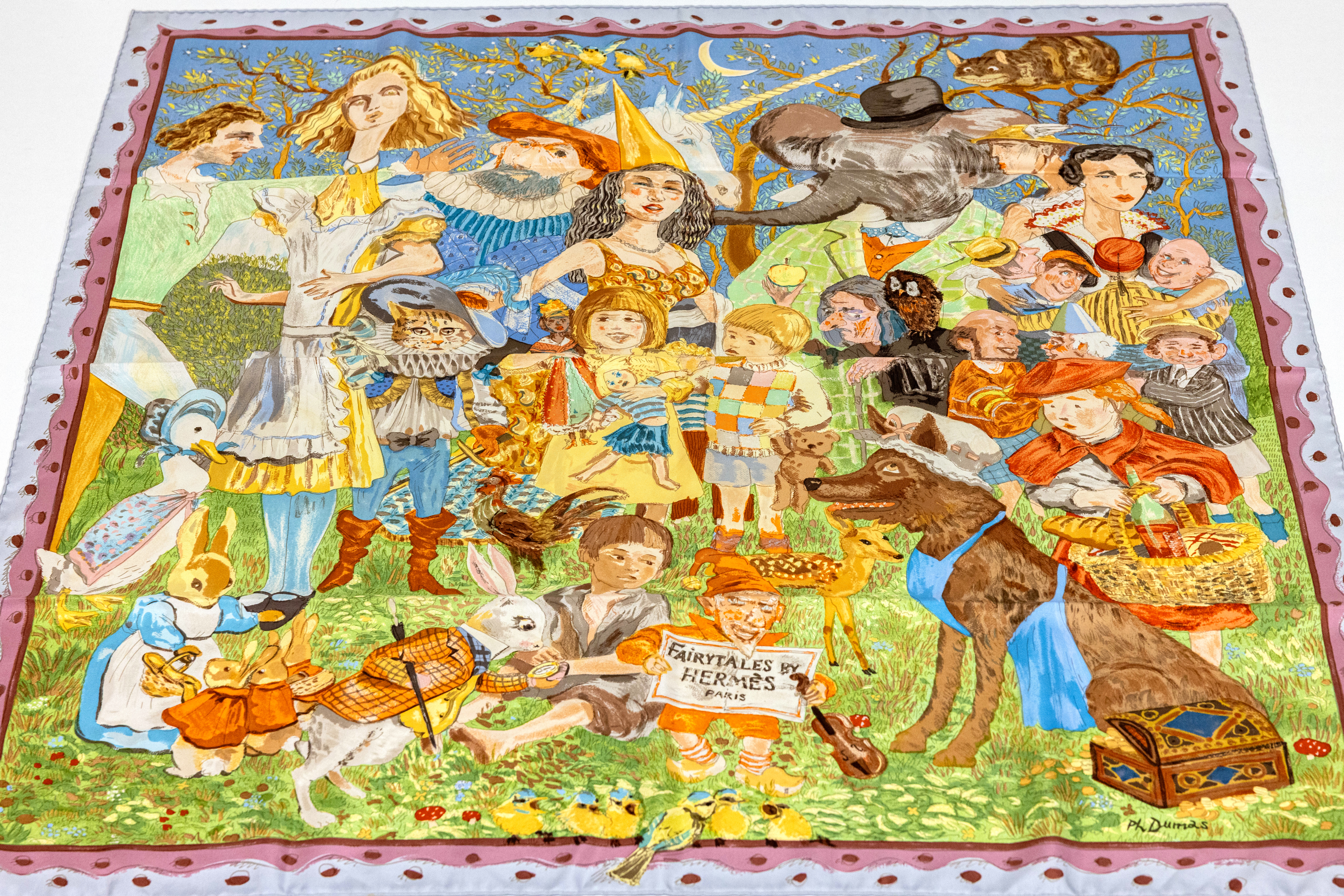 HERMES Carree "FAIRYTALES", 100% Seide, Made in France, Darstellung versch. Märchenfiguren