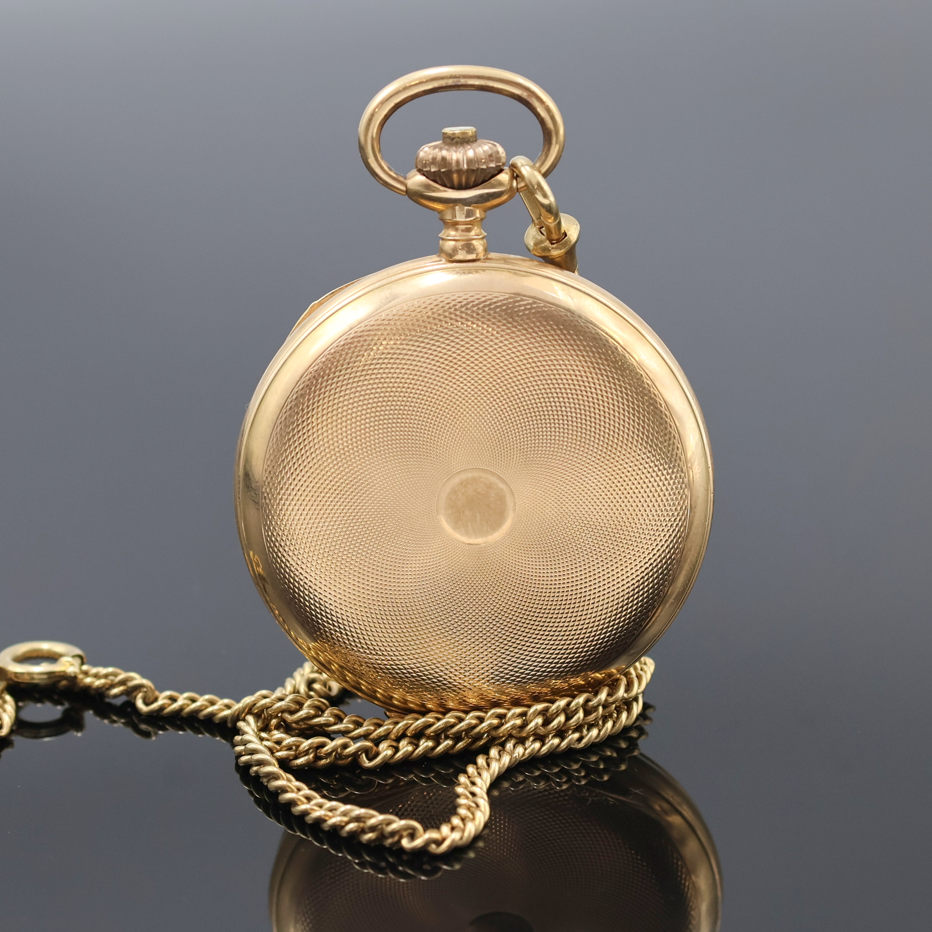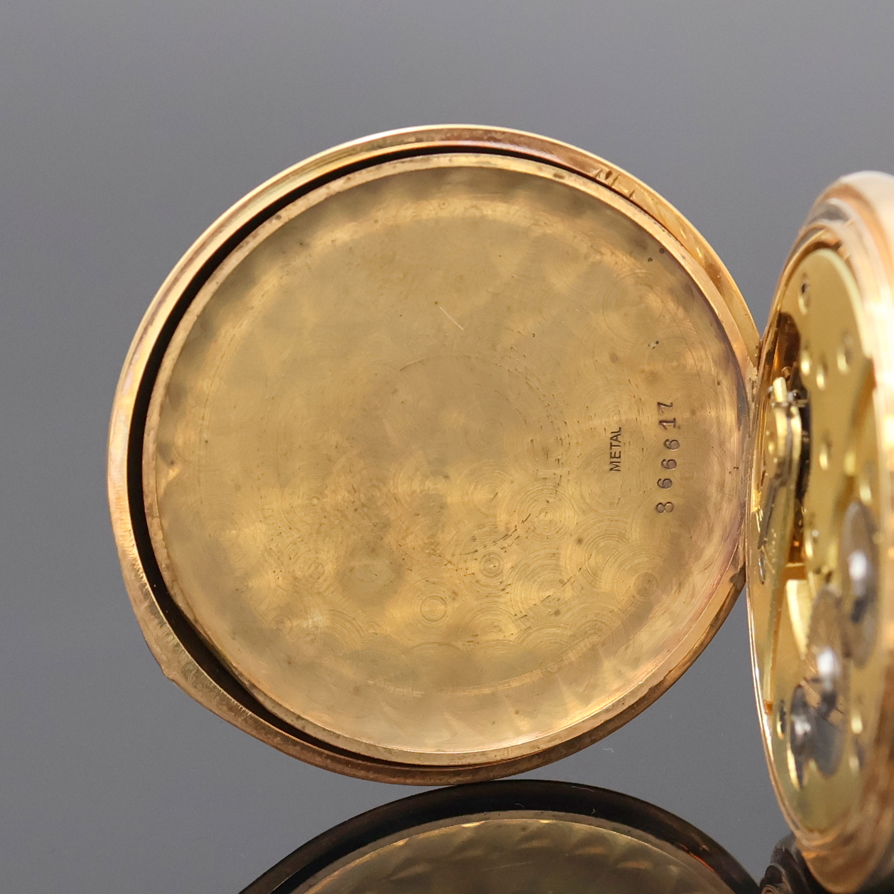 guill. Sprung- u. Rückdeckel, Geh. dell., Metallcuvette, Emailzifferbl. l. riss.,