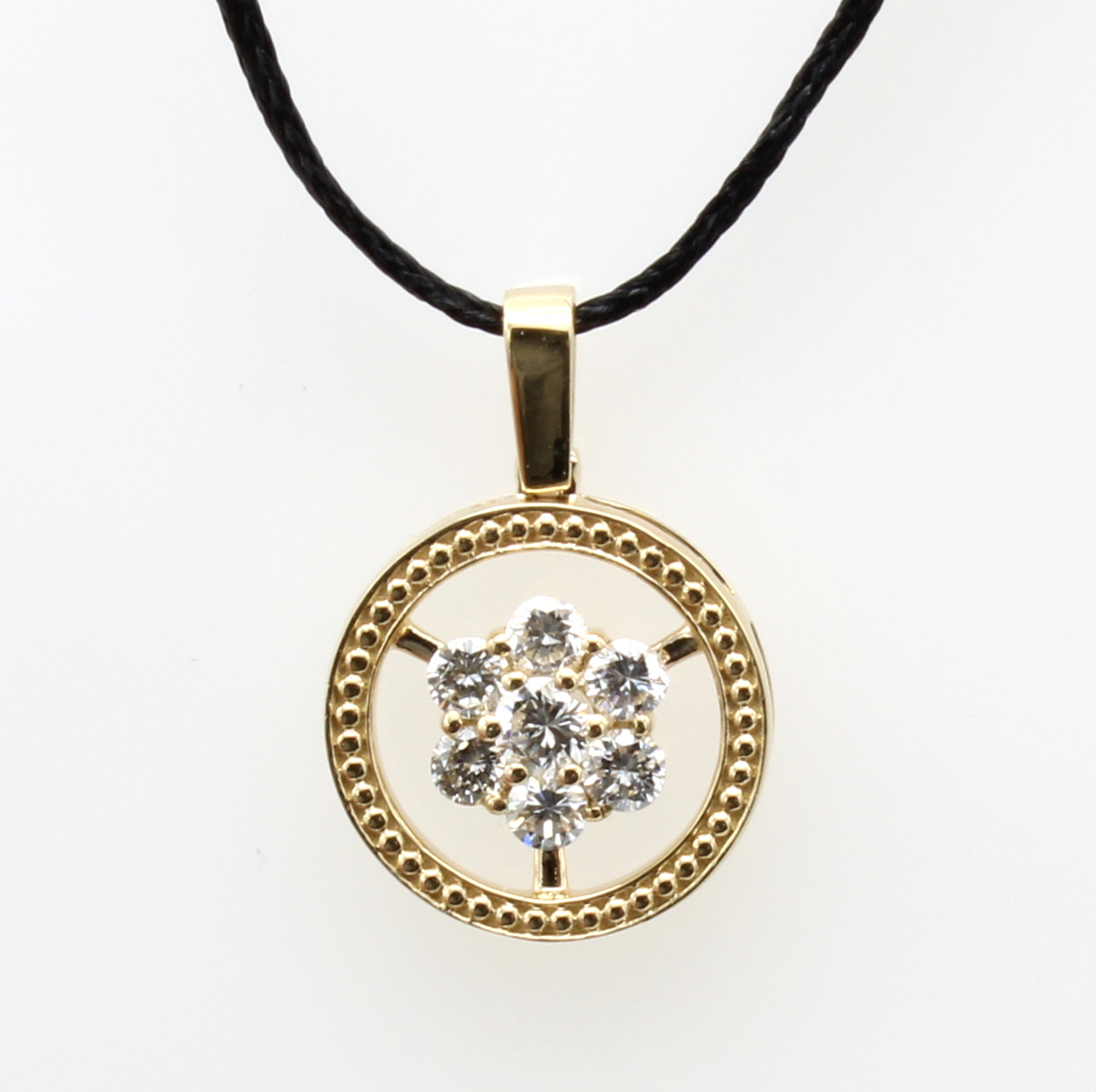 Anhänger mit Diamanten, GG 585/000, 7 Diam. zus. ca. 0.31 ct feines Weiß/vs, D. ca. 1 cm Schätzpreis: 1195, - EUR