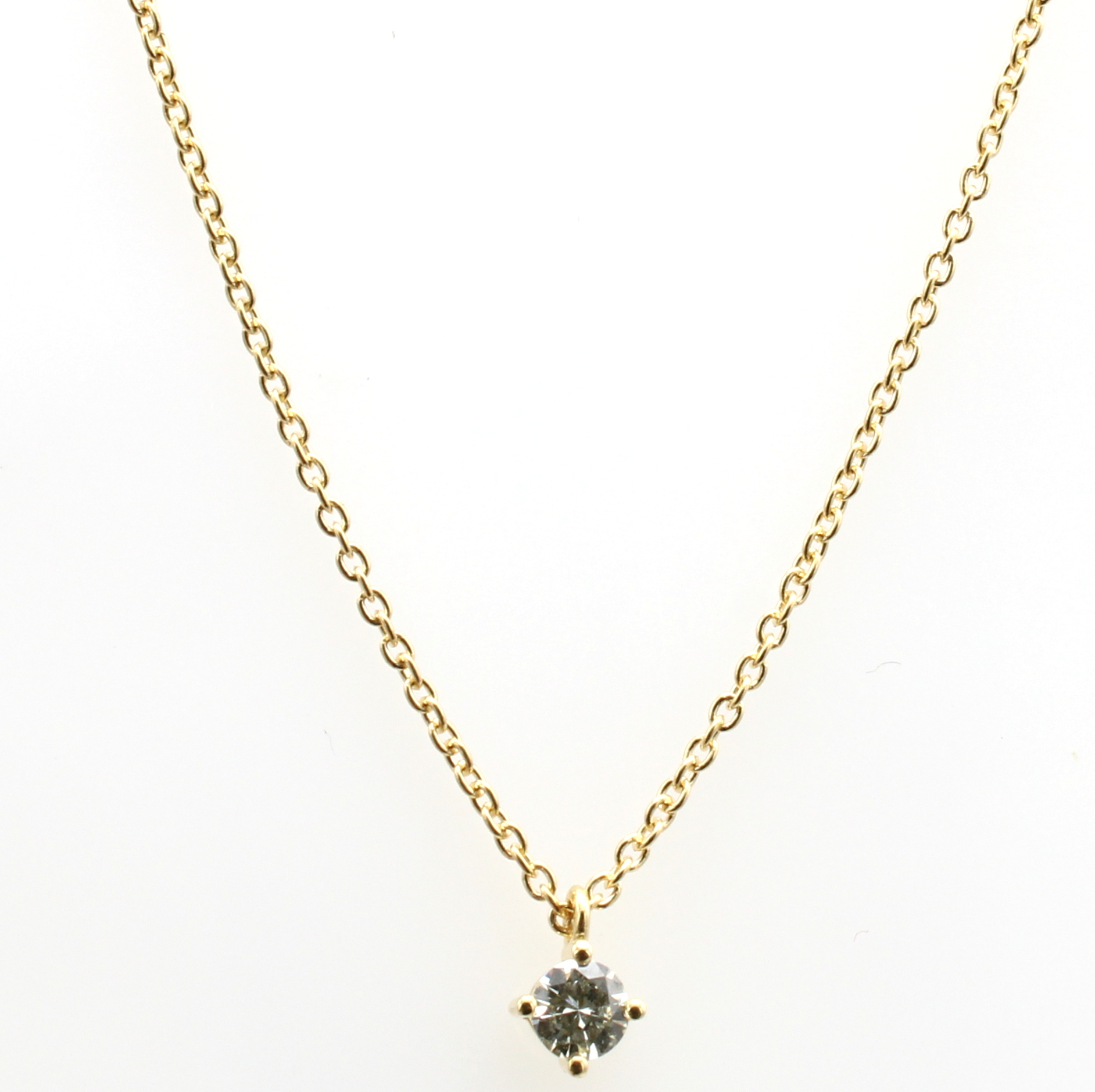 Anhänger mit Brillanten an Kette, GG 750/000, Diam. ca. 0.13 ct get.Weiß/vs1, in L. ca. 42u. 45 cm tragbar Schätzpreis: 1115, - EUR