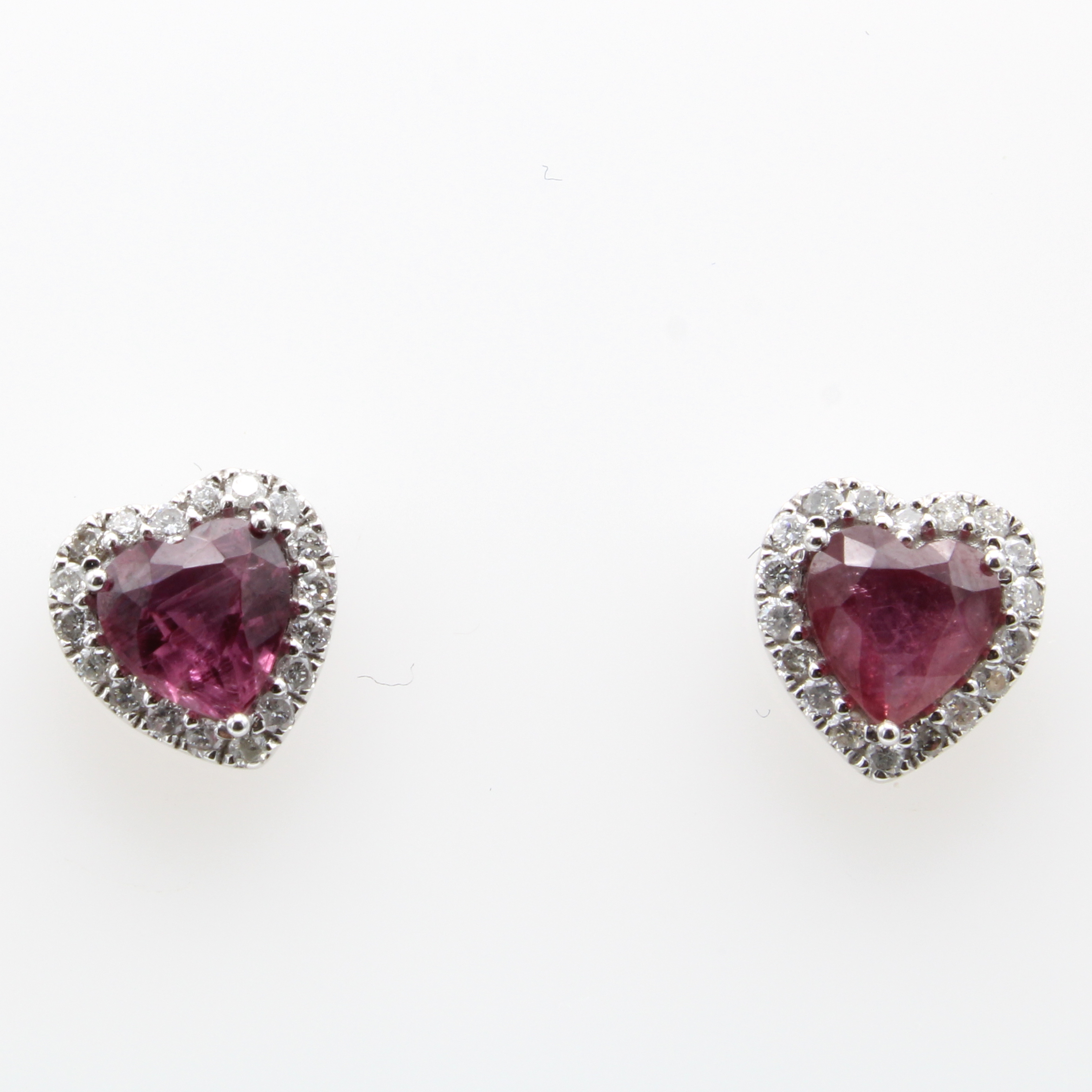 Paar Ohrstecker mit Brillanten und Rubinen, WG 750/000, 2 Rubine zus. ca. 1.40 ct, 36 Brill. zus. ca. 0.09 ct feines Weiß/si Schätzpreis: 2070, - EUR