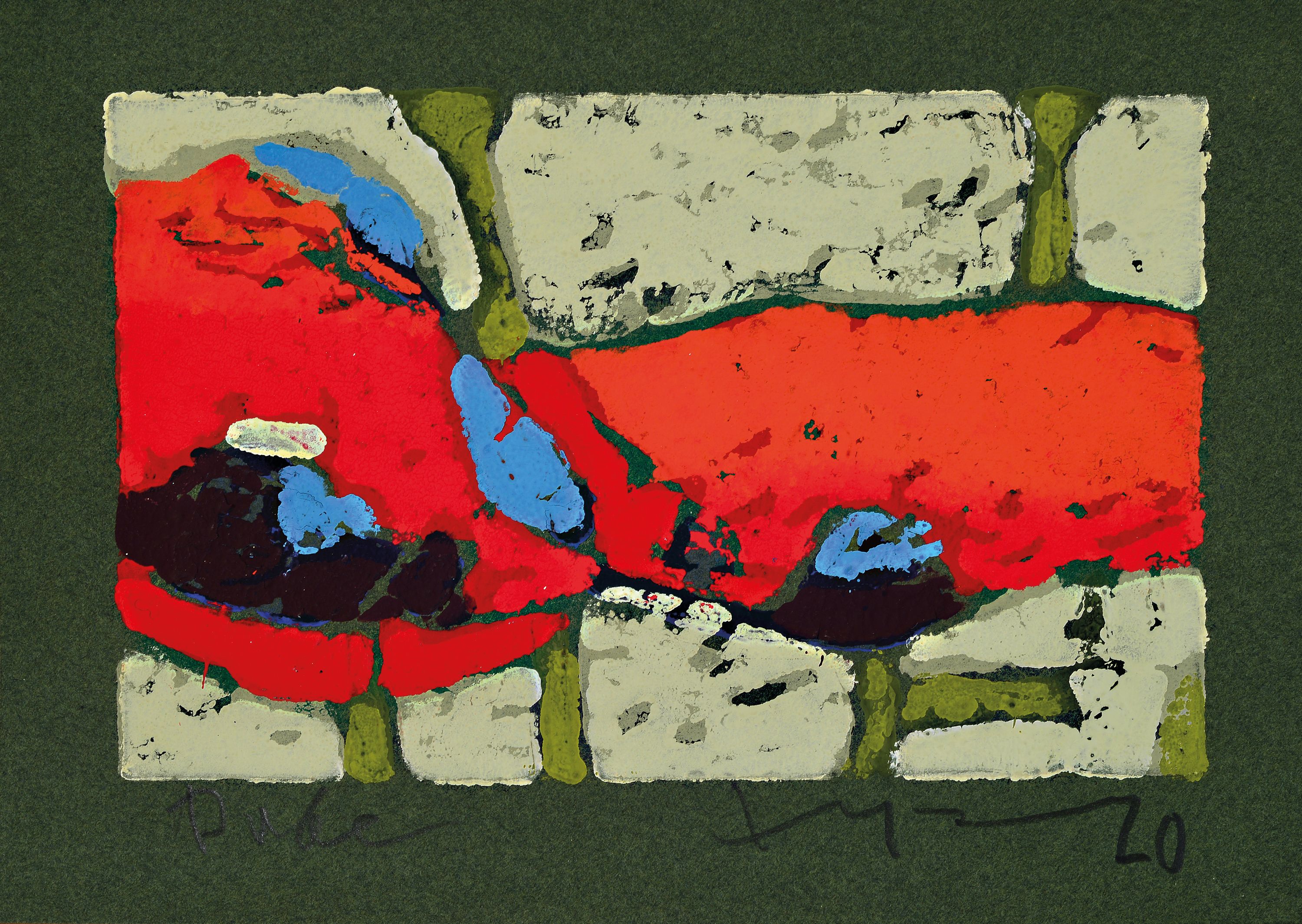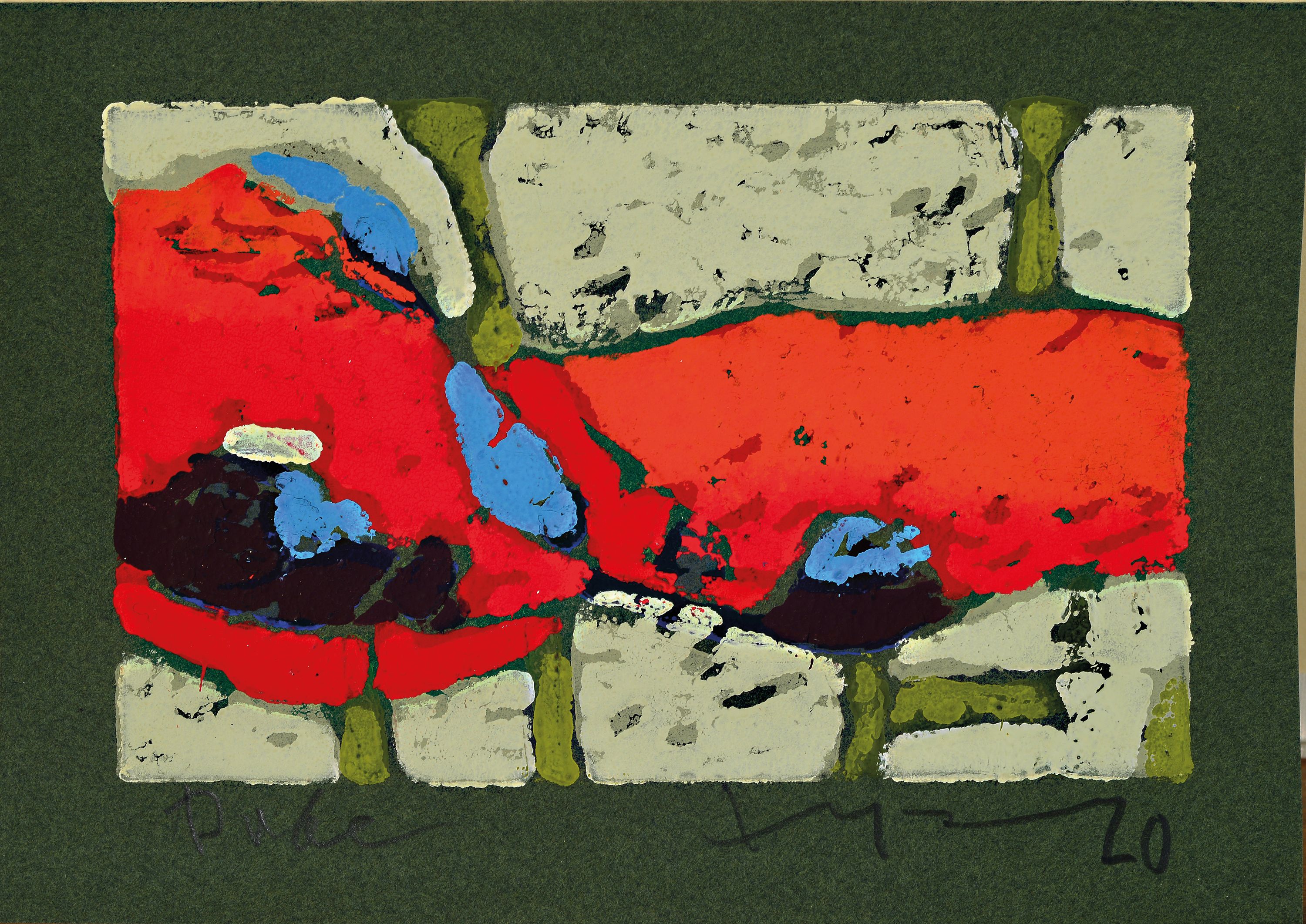 Klaus Fußmann, geb. 1938, roter Mohn, Farblinolschnitt auf grünem Papier, sign.
