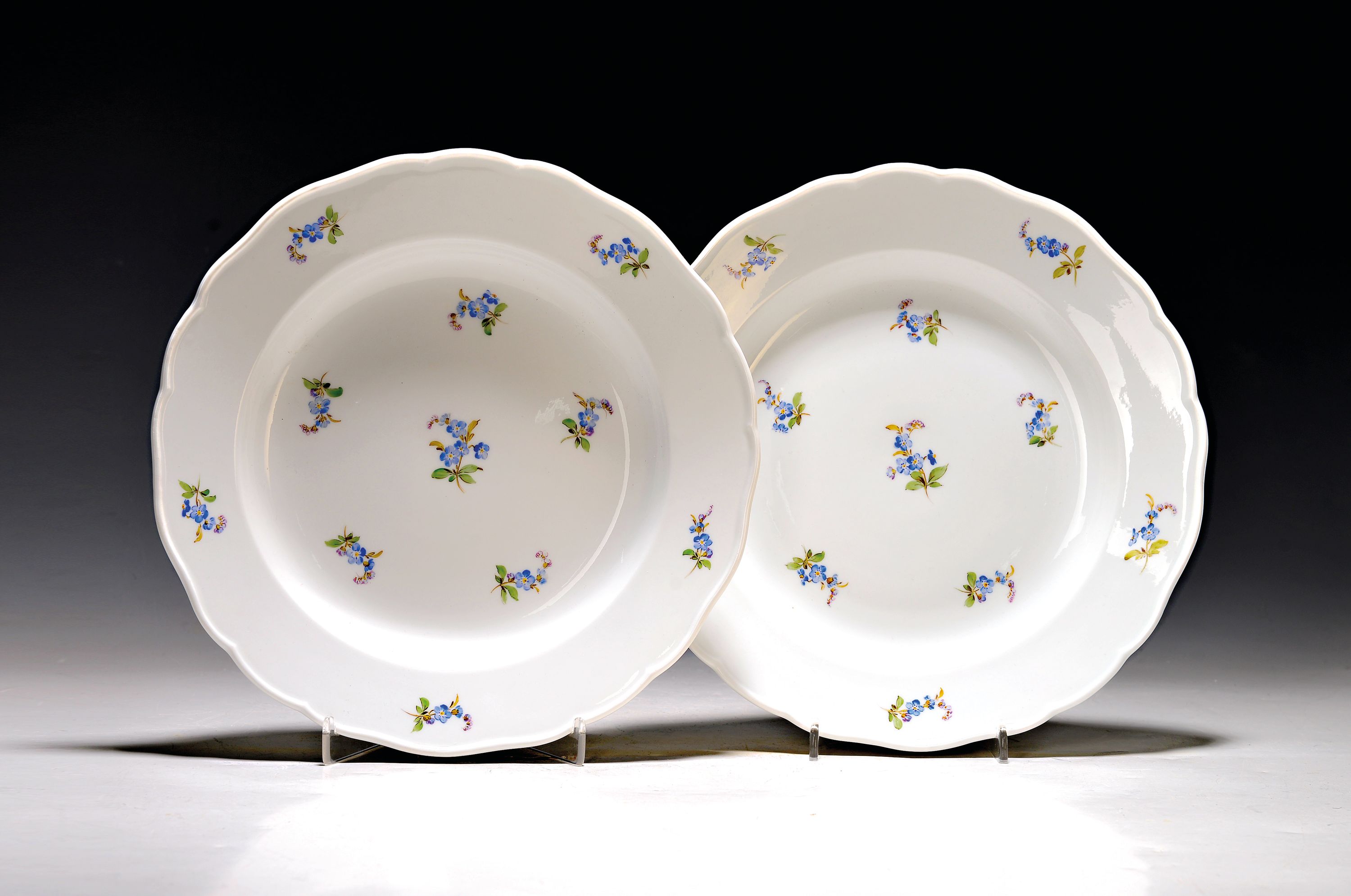 2 Teller, Meissen, um 1900, 1. Wahl, Porzellan, gestreute Vergissmeinnicht, D. ca.