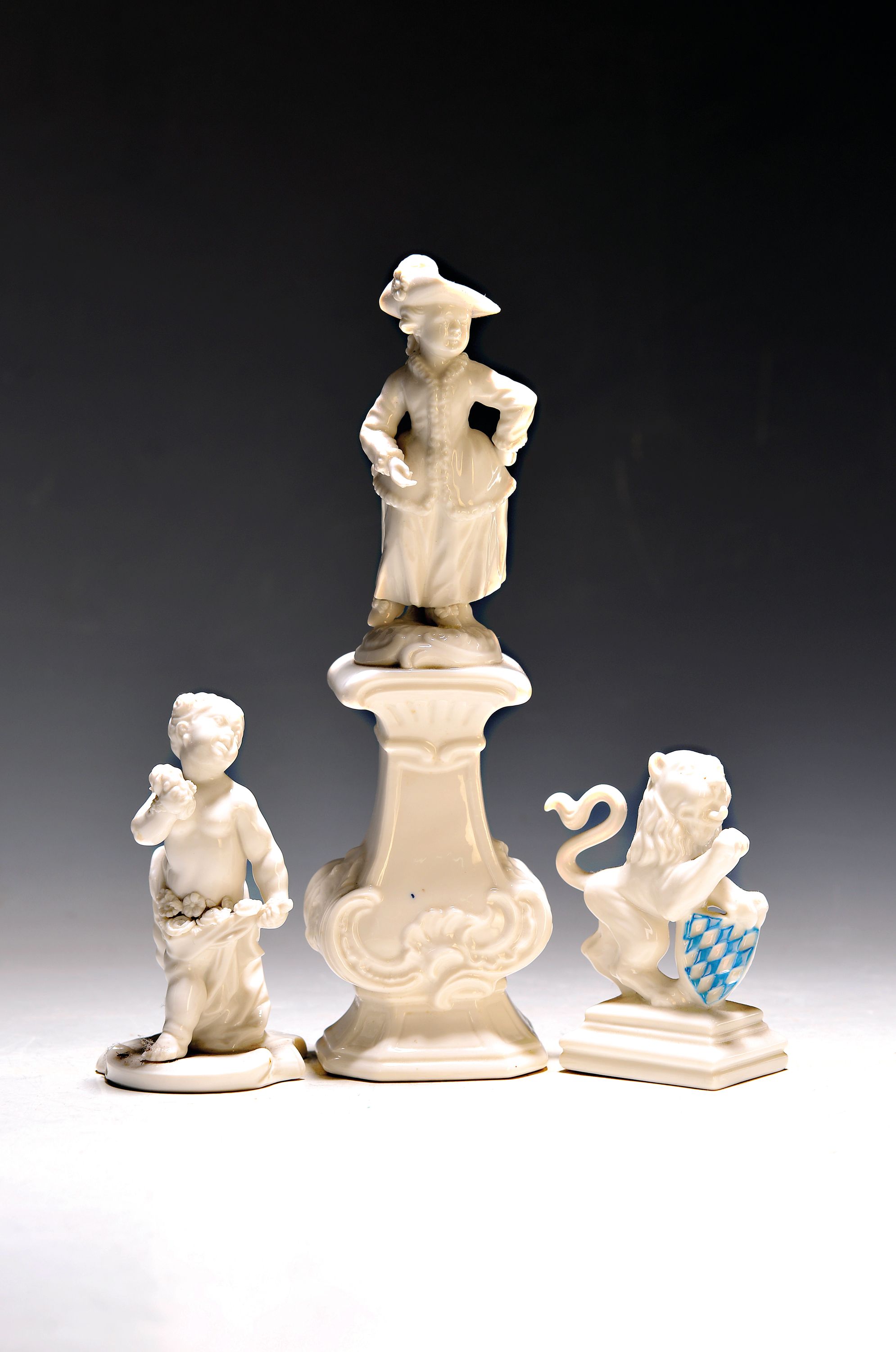 Frankenthal-Marke, H. ca. 23cm, 1x Bayerischer Löwe mit Schild, H. ca. 8.5cm; 1x