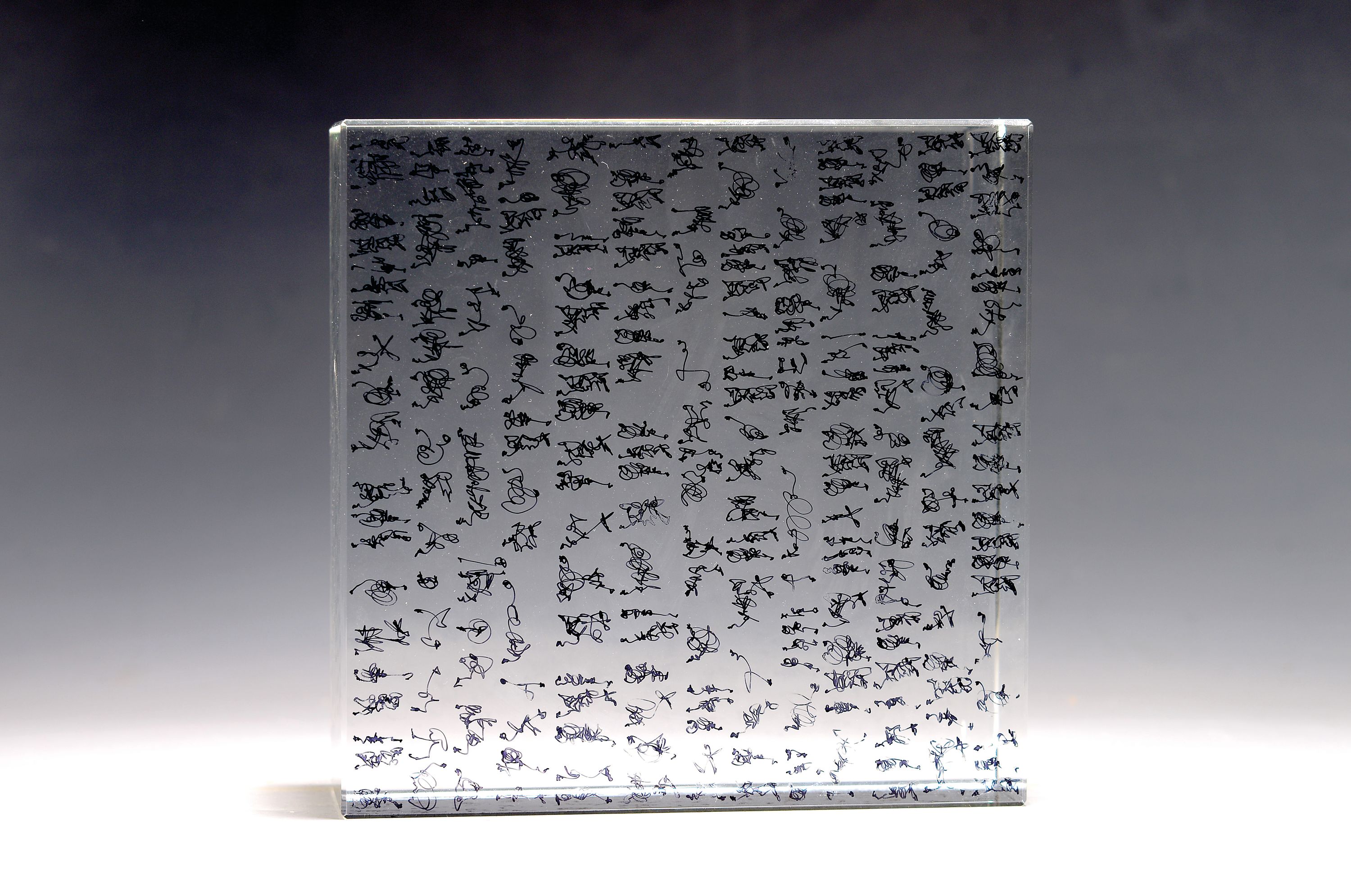bemalt mit z.T. figürlichen Zeichen, seitlichsigniert und datiert, 20x20x8 cm