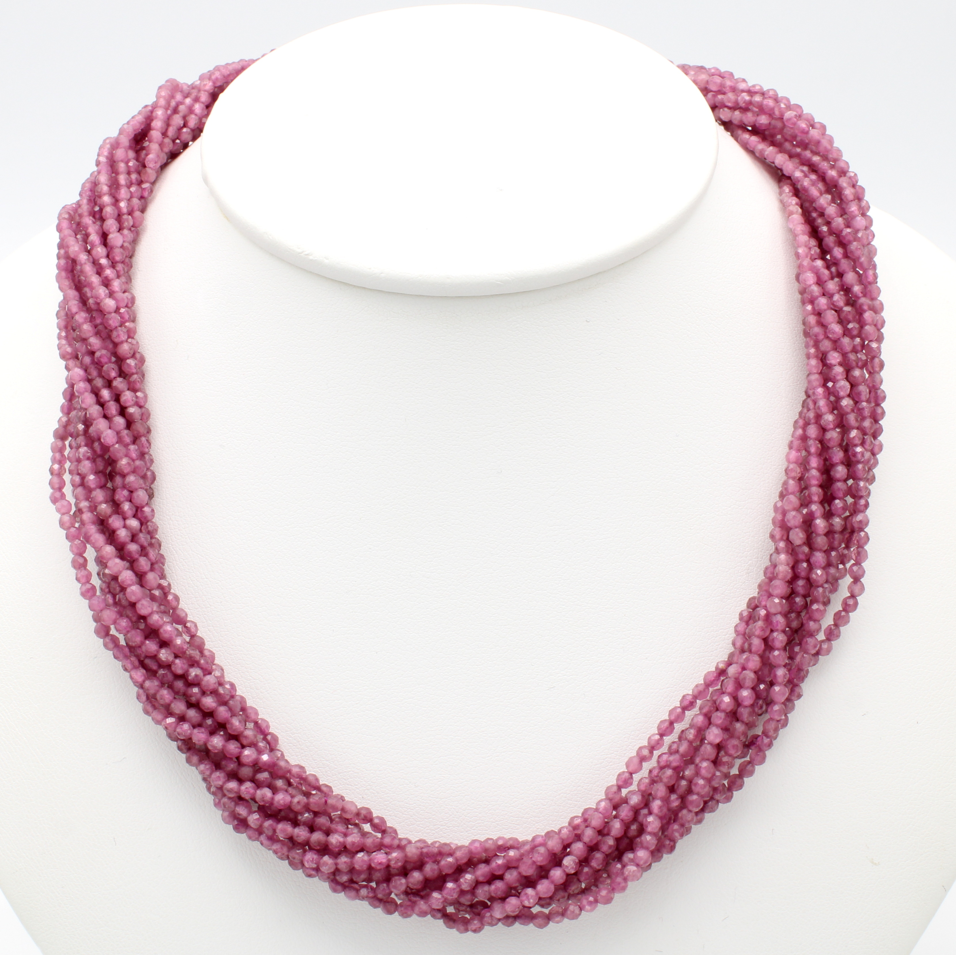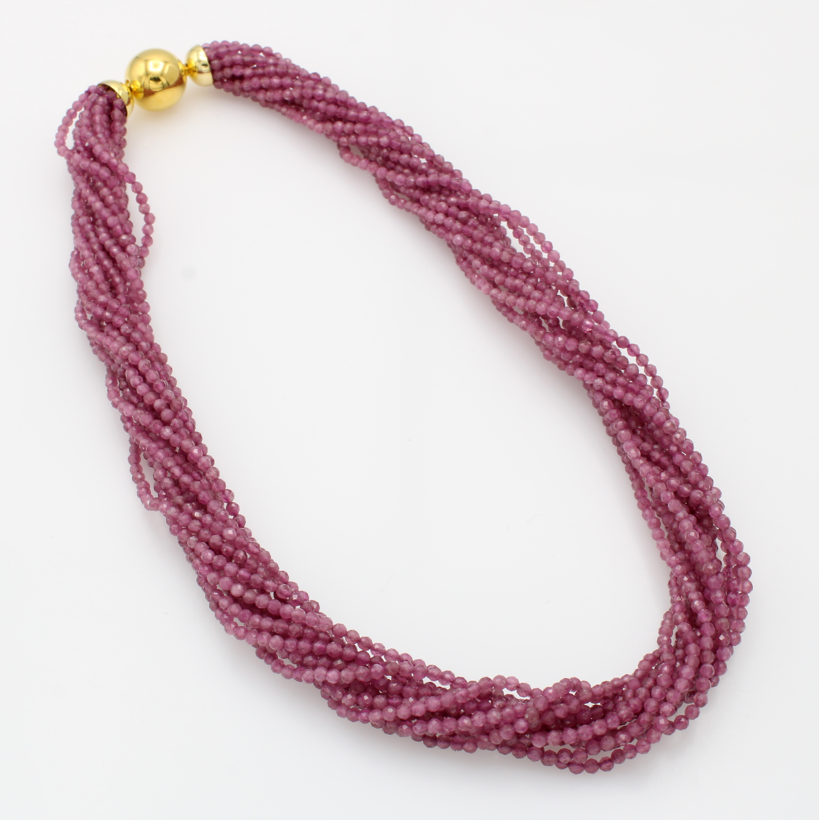 13-reihiges Turmalincollier mit Kugelwechsel- schließe, Endkappen u. Wechselschl. 925er Silber verg., fac., pinkfarb. Turmaline ca. 10 mm, L. ca. 45 cm Schätzpreis: 1680, - EUR