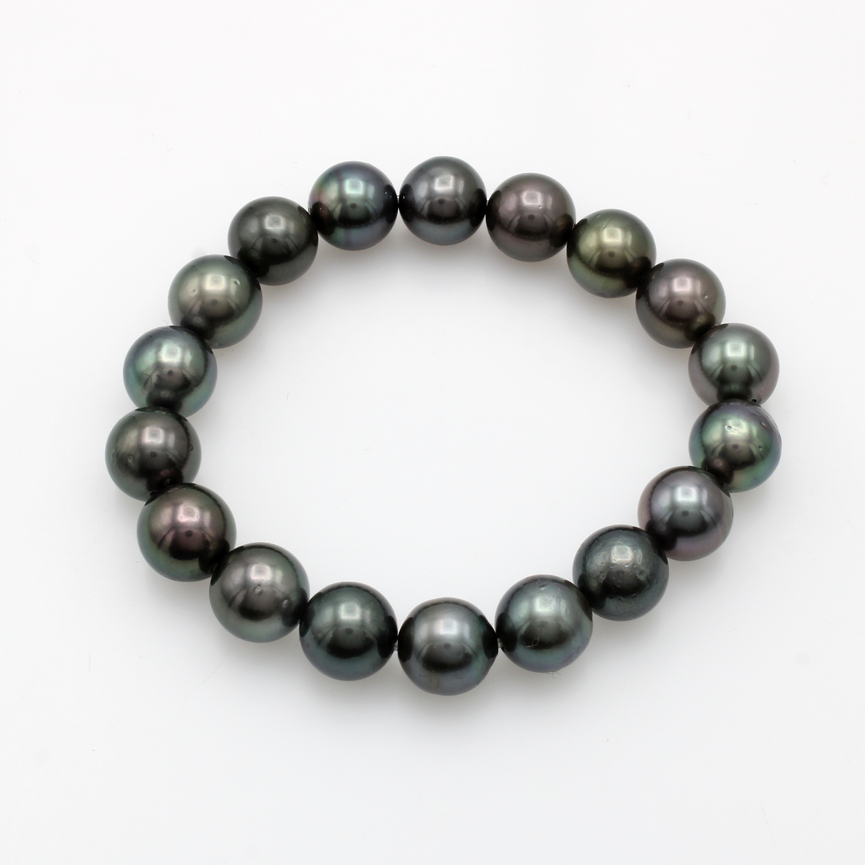 Flexibles Tahitiperlarmband, dunkelgraue- grünliche Perlen mit braunem Farbspiel, D. ca.10.5-11 mm Schätzpreis: 1600, - EUR