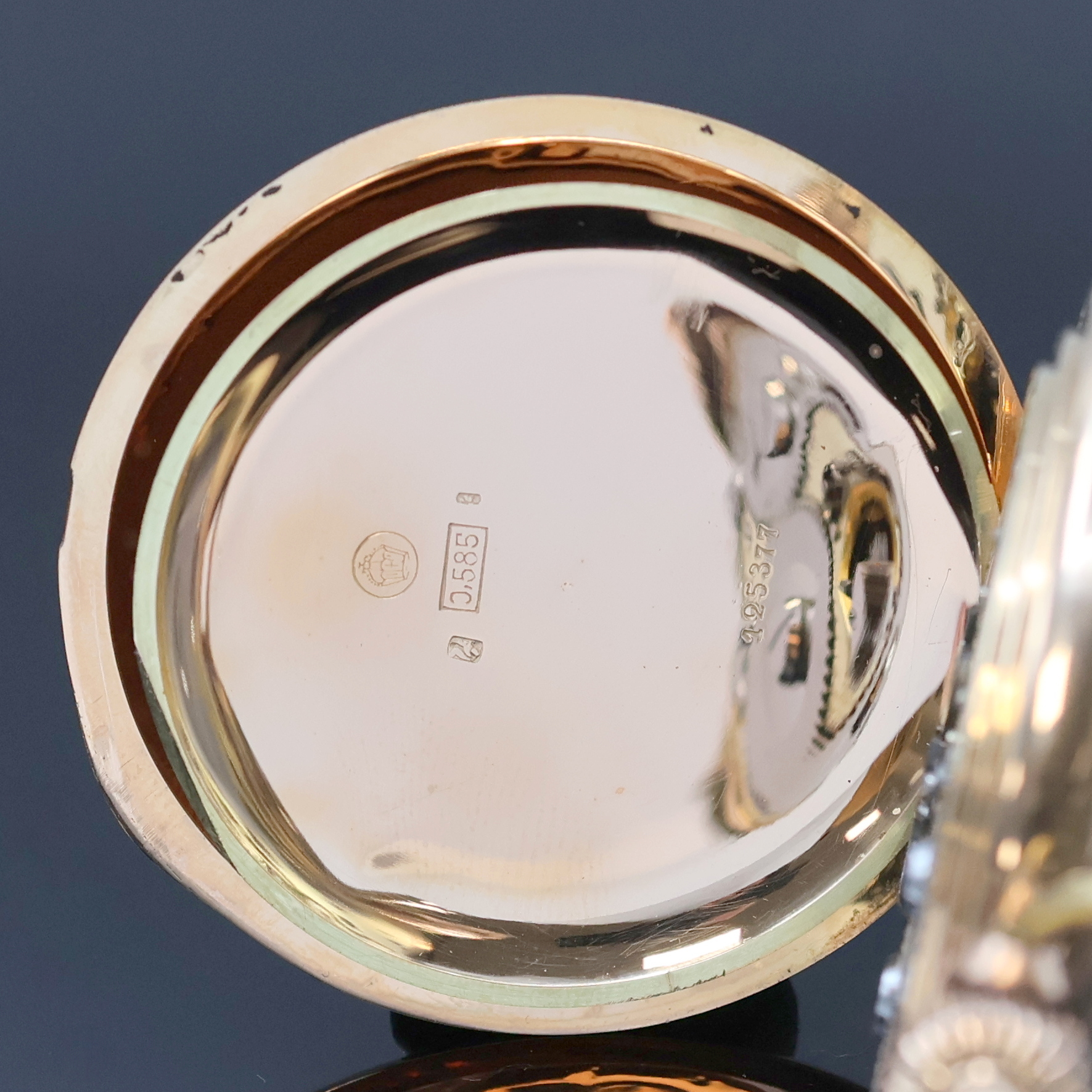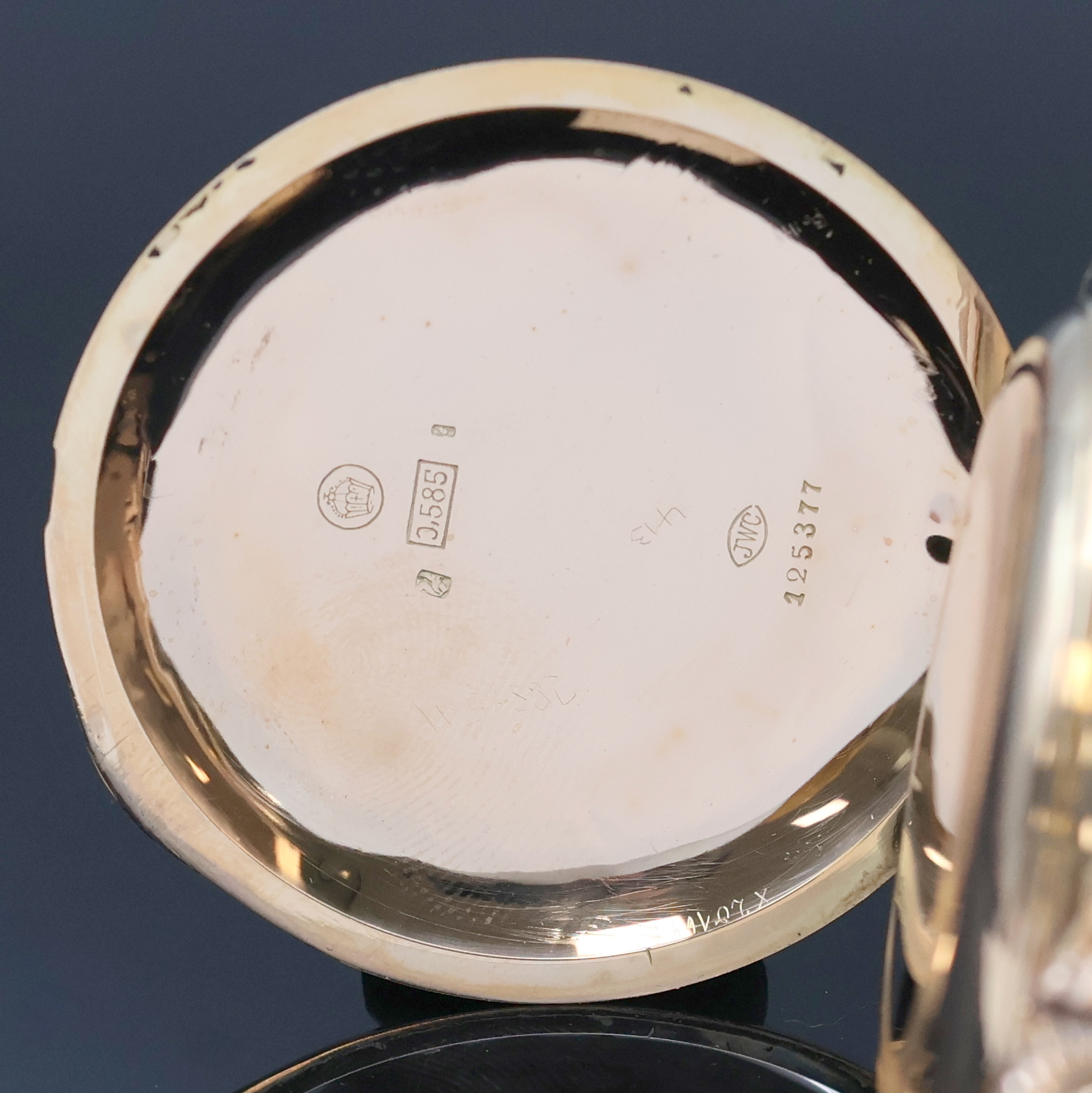 IWC Herrensavonette in RG 585/000, Schweiz um 1895, guill. 3-Deckel-Goldgeh. dell./