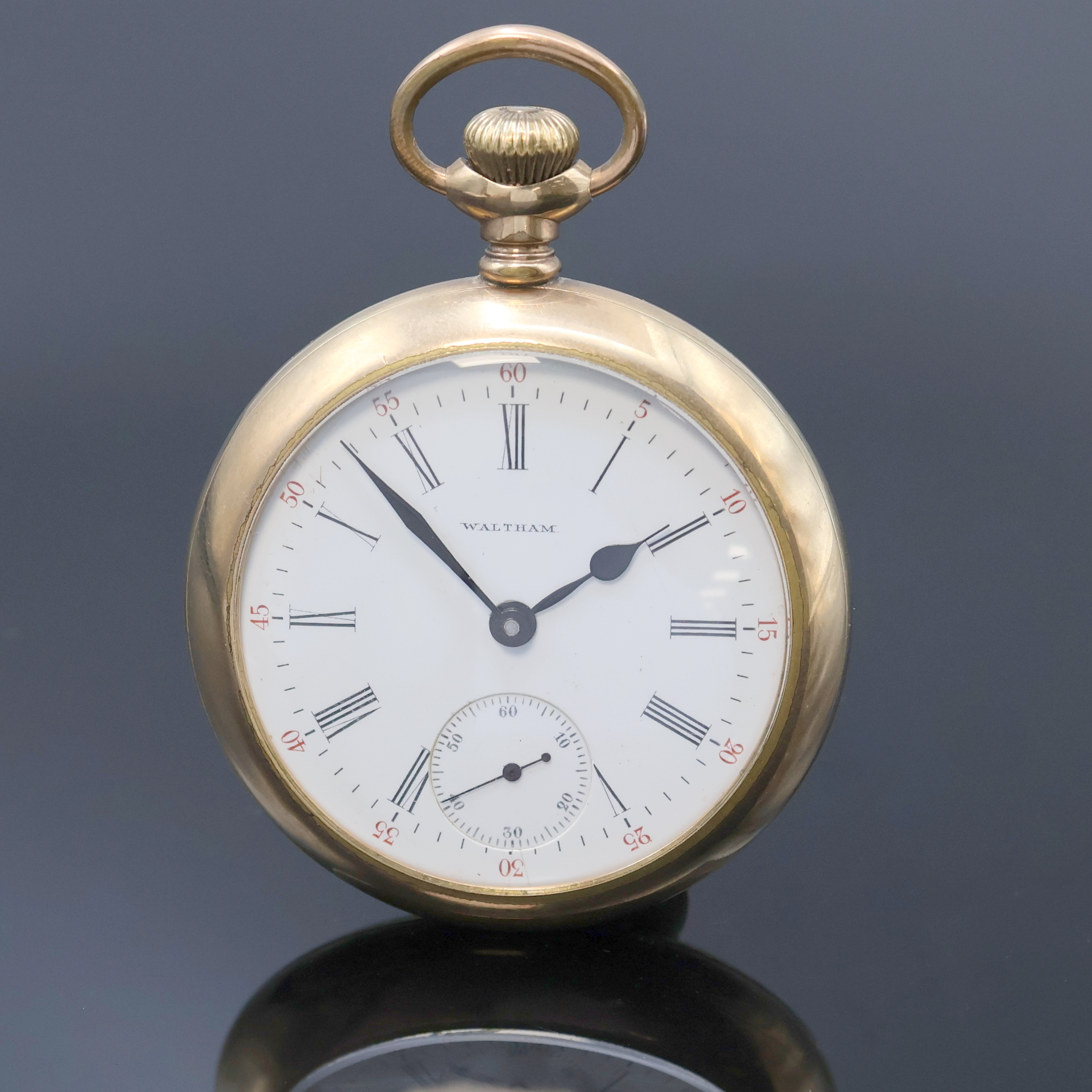 WALTHAM vergoldete Taschenuhr, USA um 1900, beids. verschr. Geh., rücks. Hirsch-Gravur,