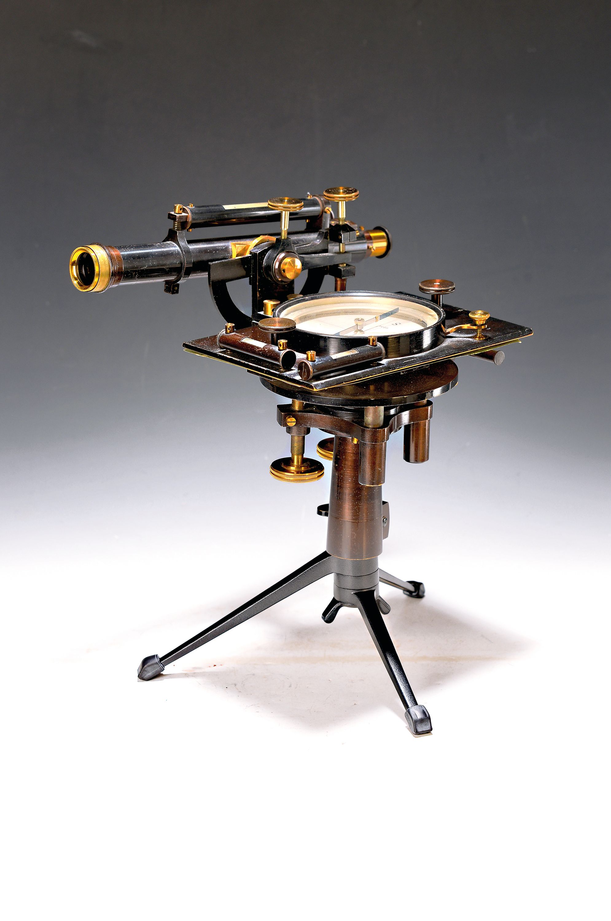 20. Jh., Messing, brüniert, ohne Stativ, orig. Kasten, Gebr.spuren, ein Riegel am