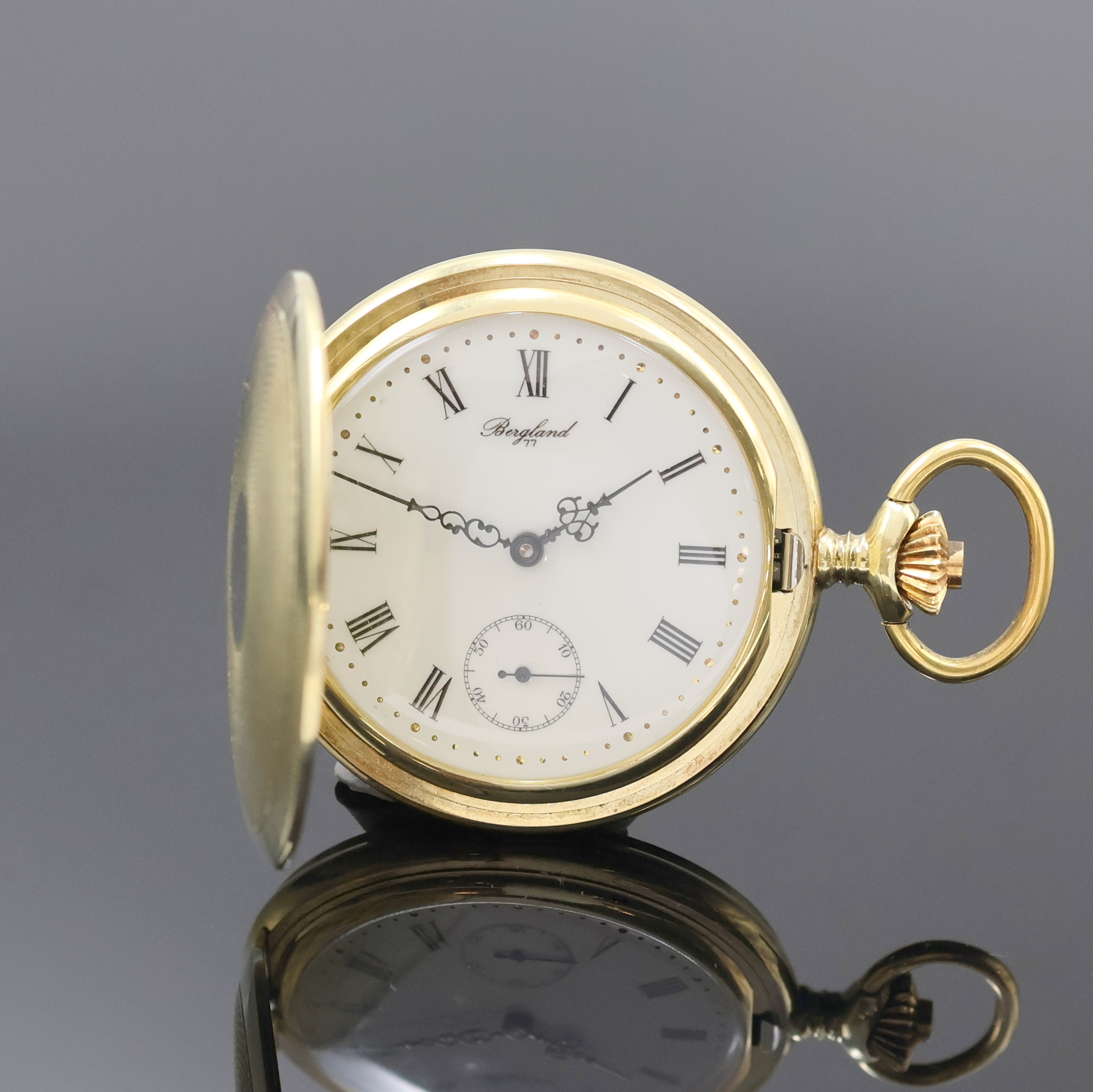 BERGLAND 77 Herrensavonette in GG 585/000, Schweiz um 1990, guill. 2-Deckel Goldgeh.,