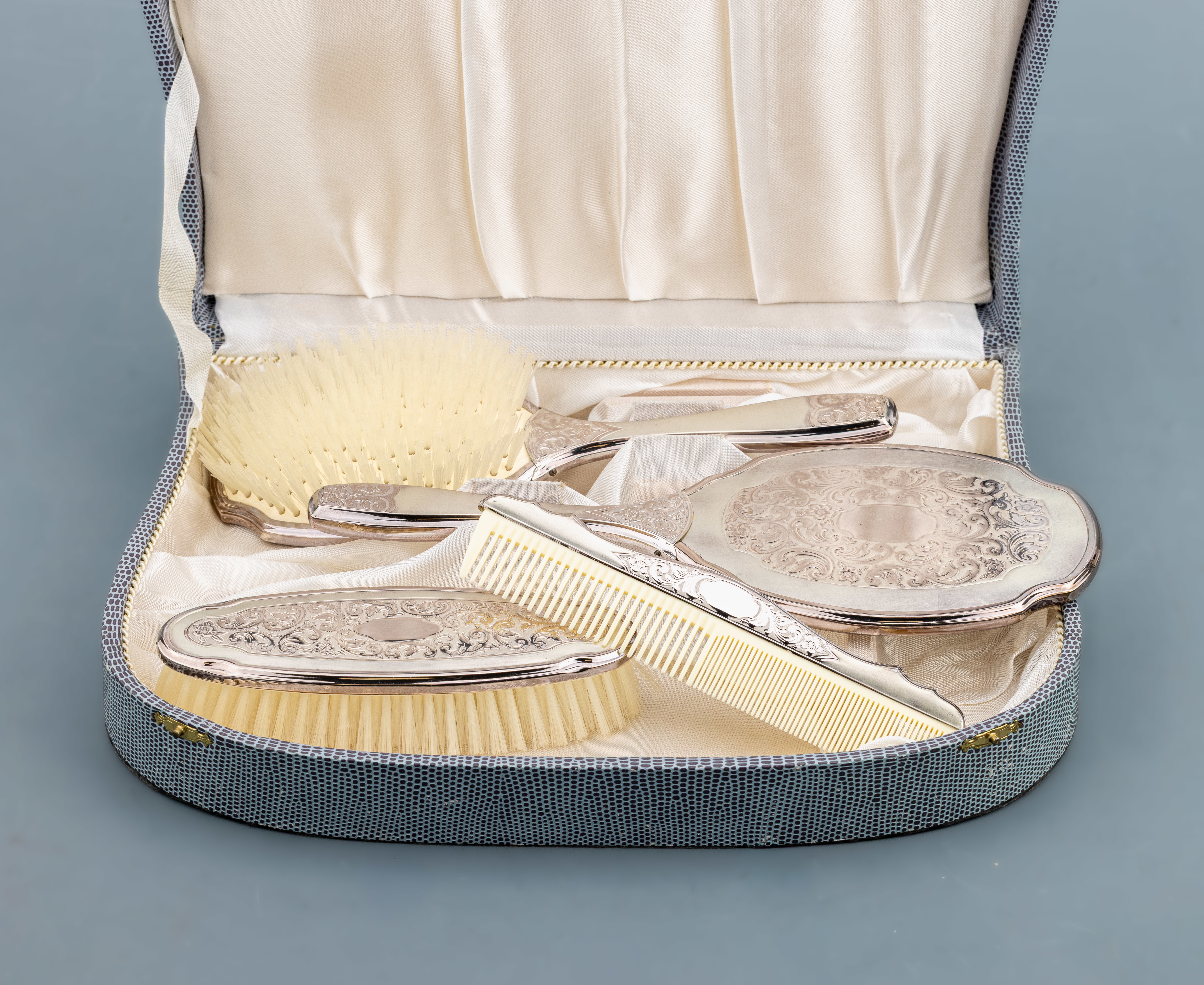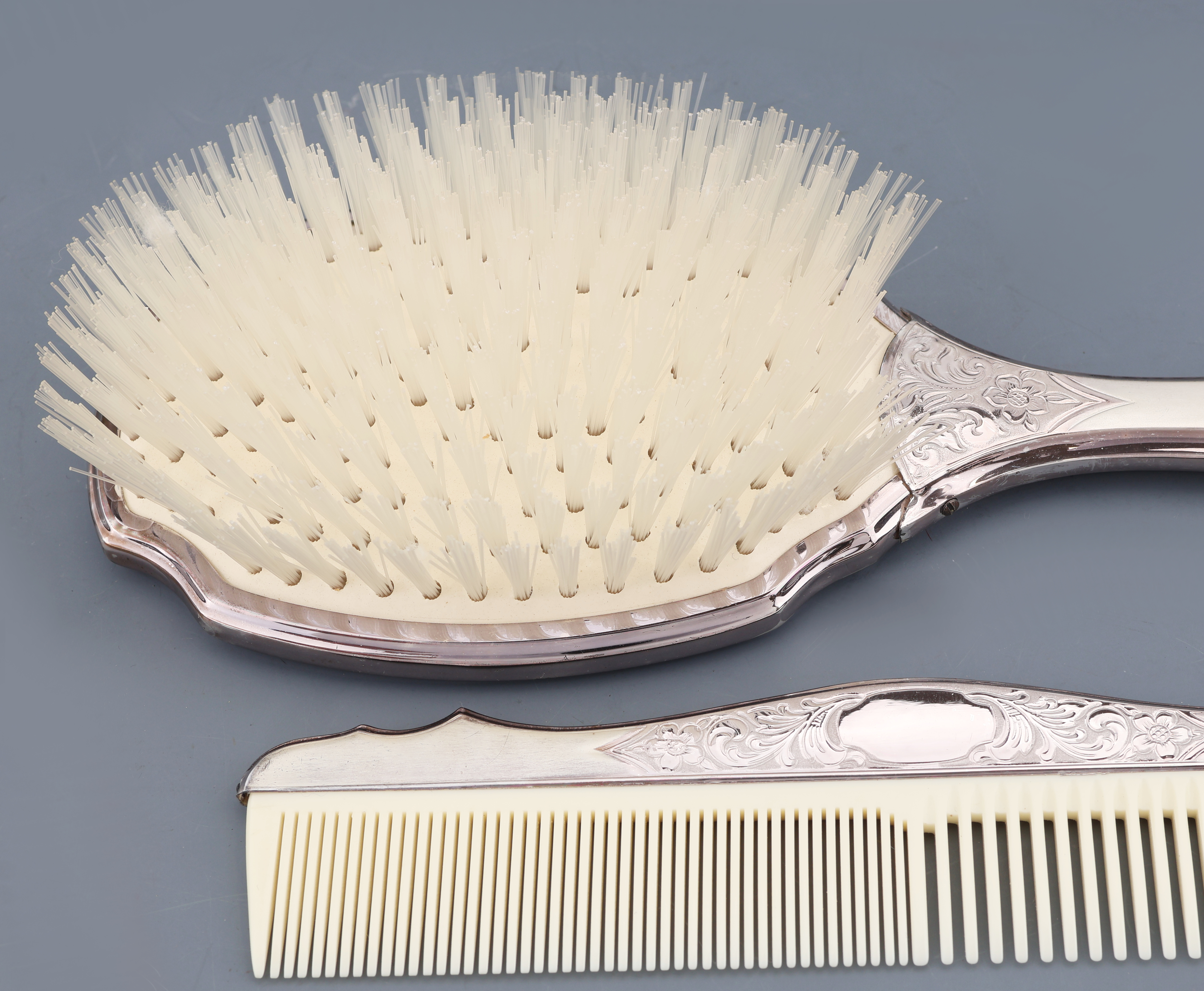 1 cloth brush, 1 comb, rich rococo- decor with floral tendrillars, acanthus leaf
