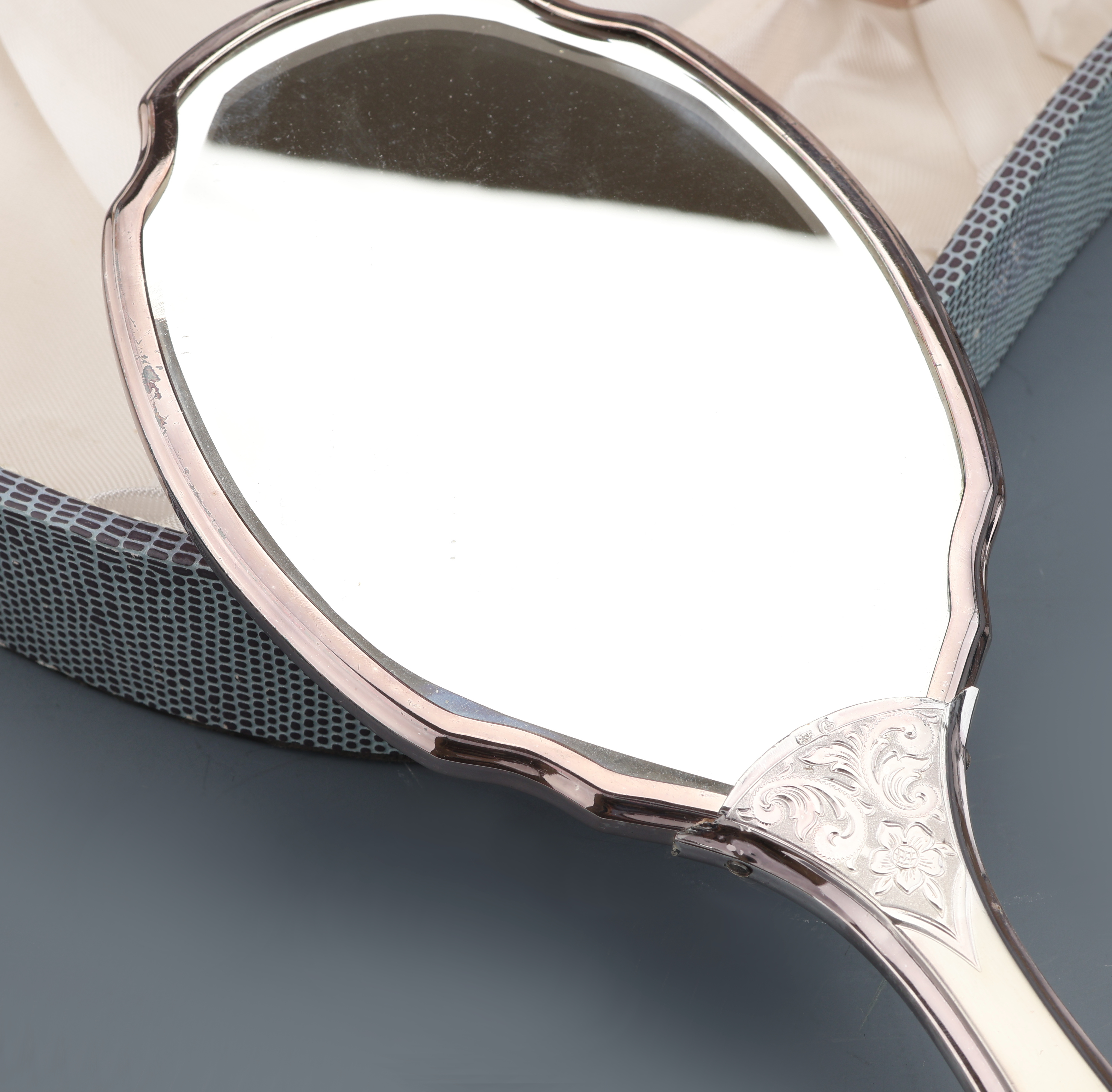 Hairdressing set , silver 835, german, 1950/60s, comprised of: 1 mirror, 1 hair brush,