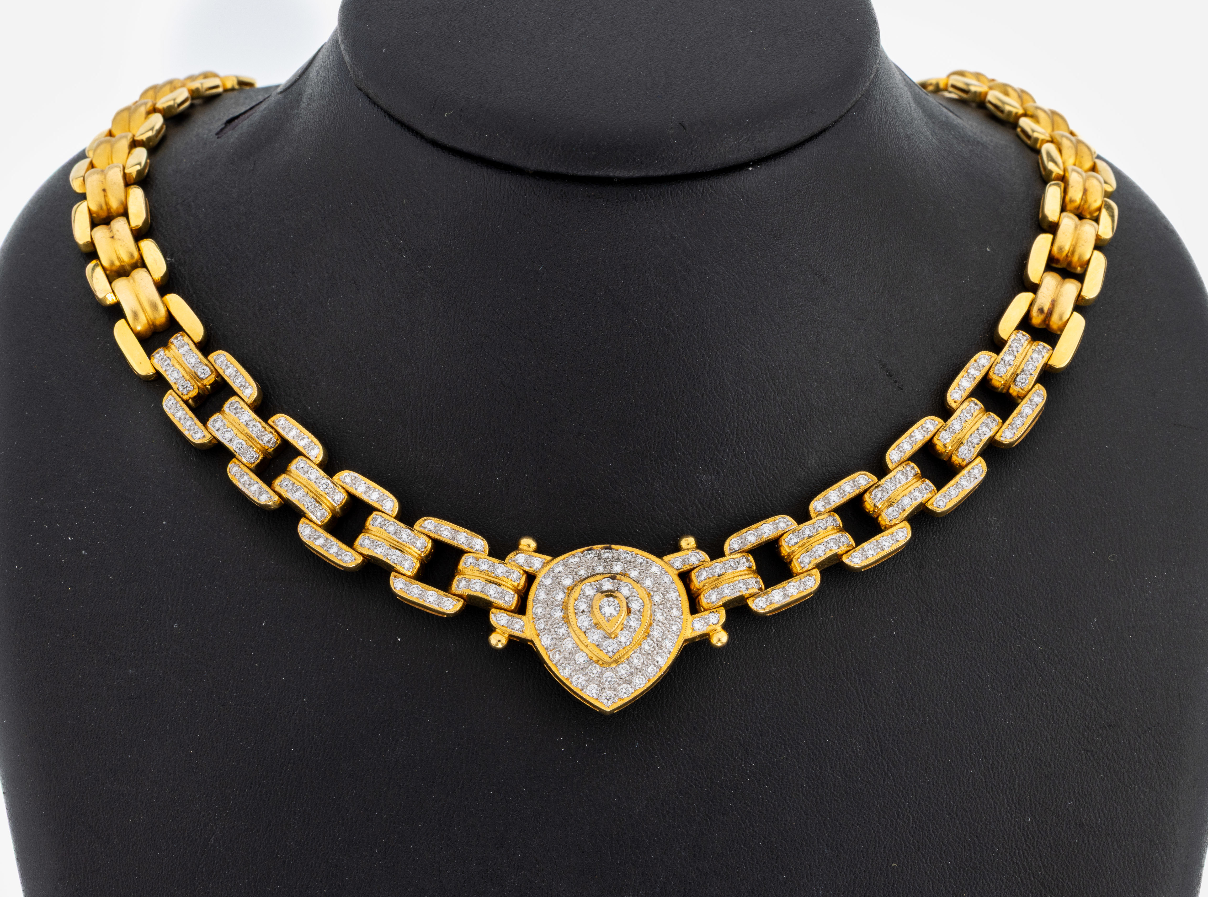 Prunkvolles 18 kt Gold Brillant-Collier, GG750/000 gepr., pol. und sat., mittleren