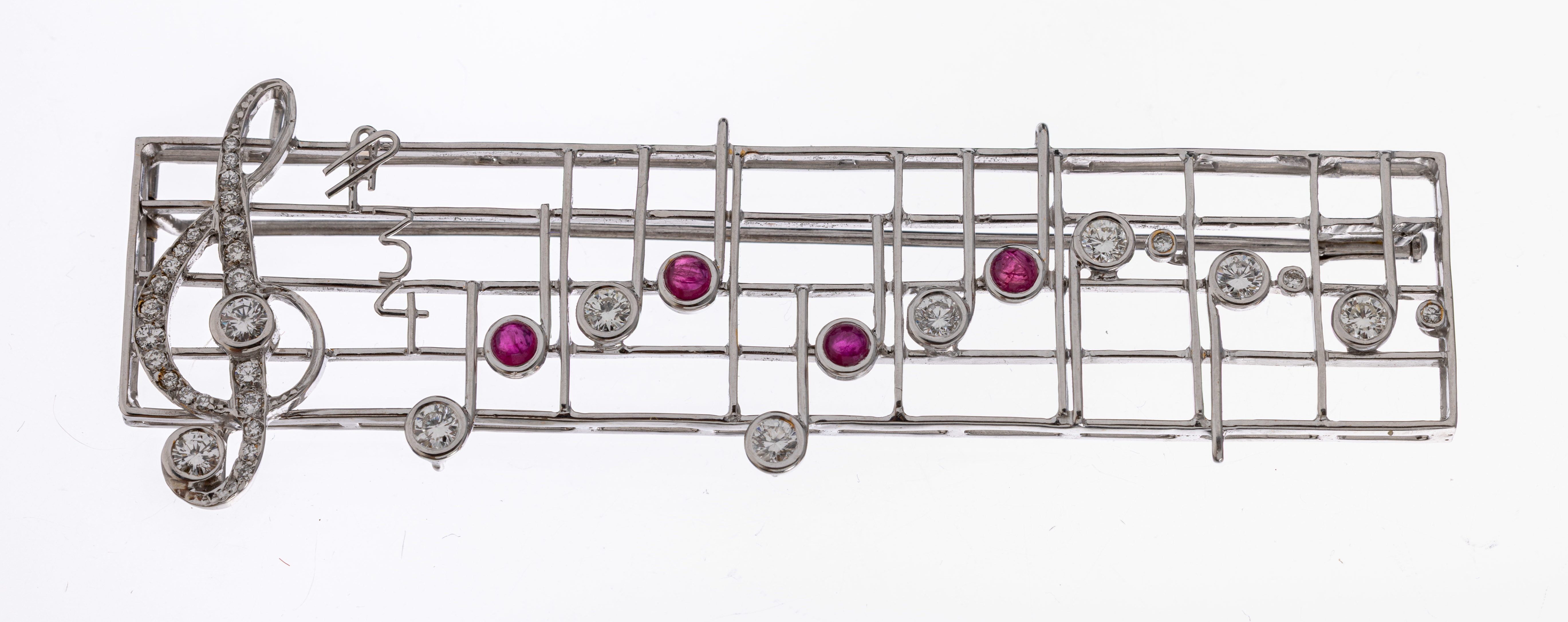 eines Notenblatts, Notenschlüssel und Noten, 34 Brillanten zus. ca. 1.25 ct feines