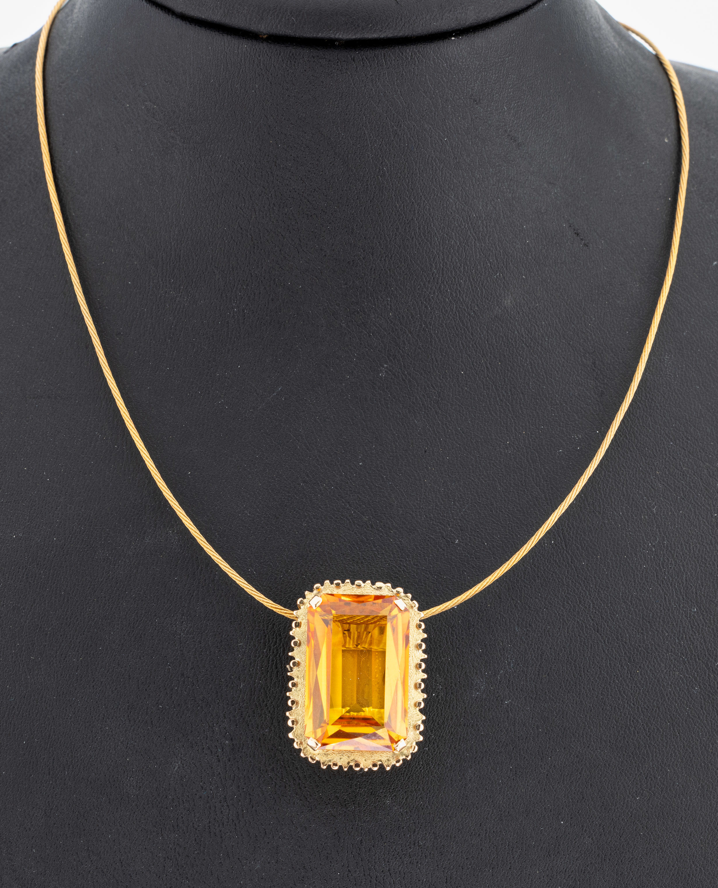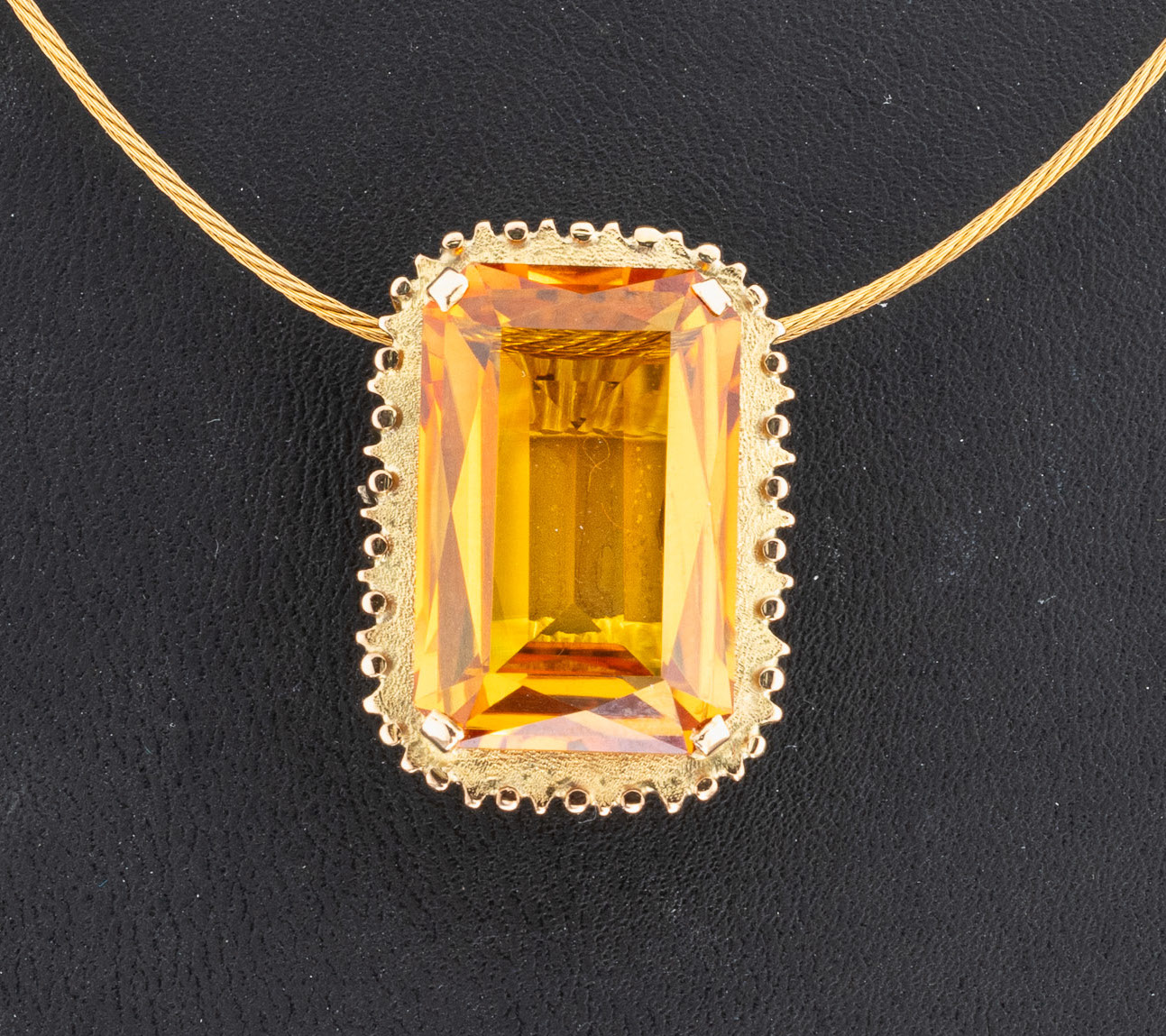 14 kt Gold Farbstein-Anhänger, GG 585/000 gepr., facett. synth. Citrin, schlichte