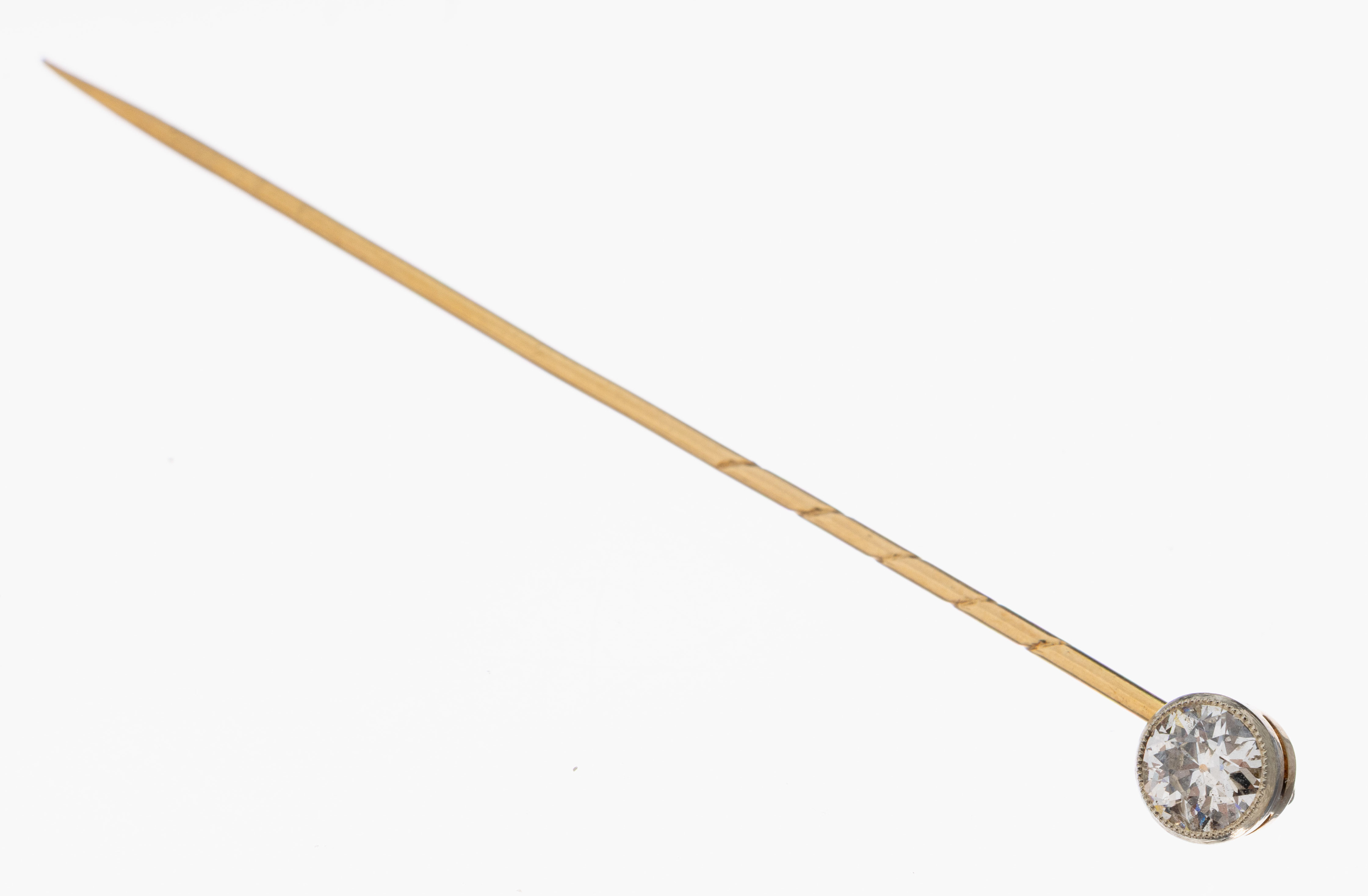 14 kt Gold Diamant-Krawattennadel, um 1910, GG 585/000, Altschliffdiamant ca. 0.50