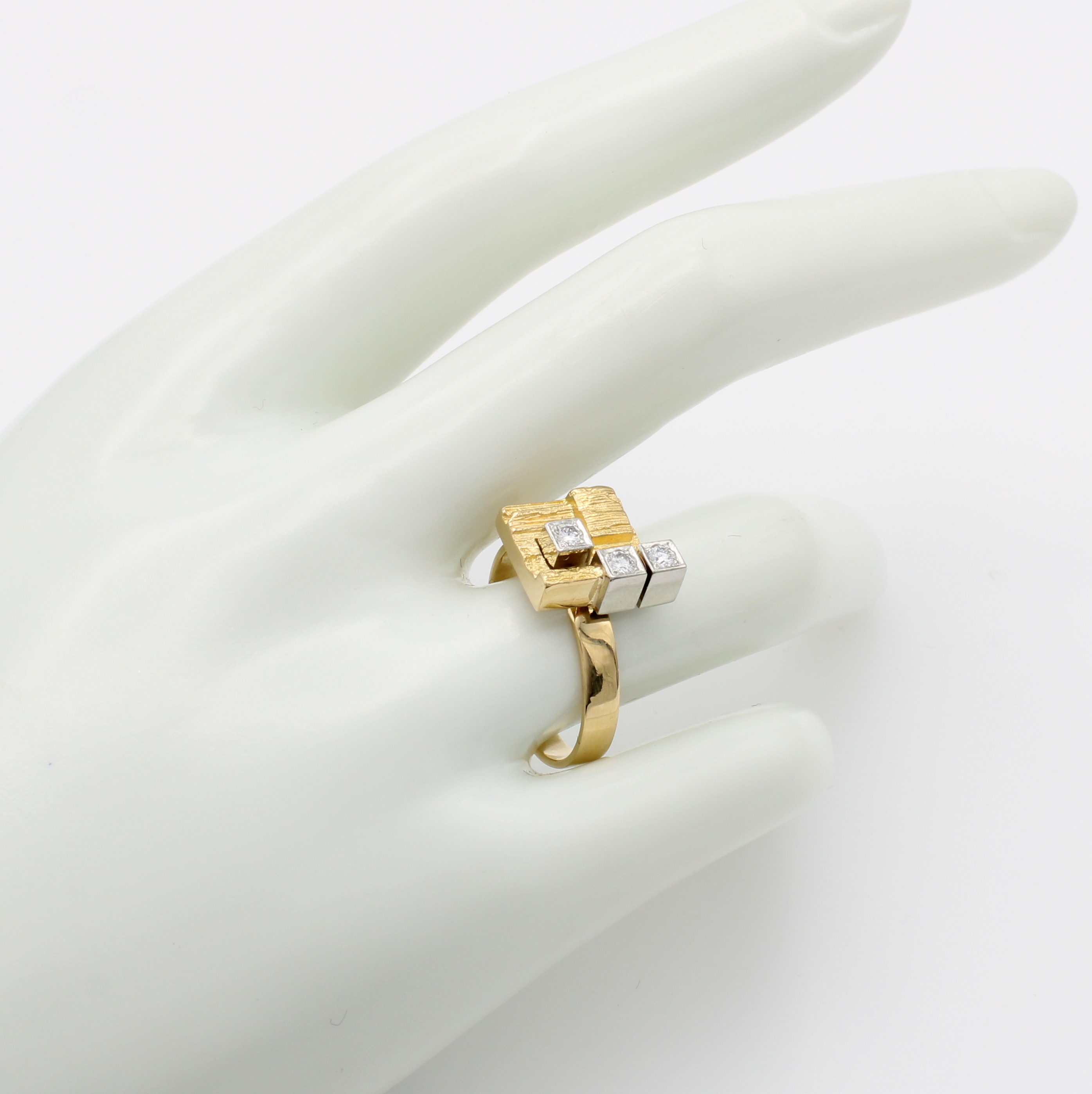 Ring mit Brillanten, sign. Lapponia, GG/WG 750/000, 3 Brill. zus. ca. 0.12 ct feines Weiß/vs, RW ca. 57 Schätzpreis: 1800, - EUR
