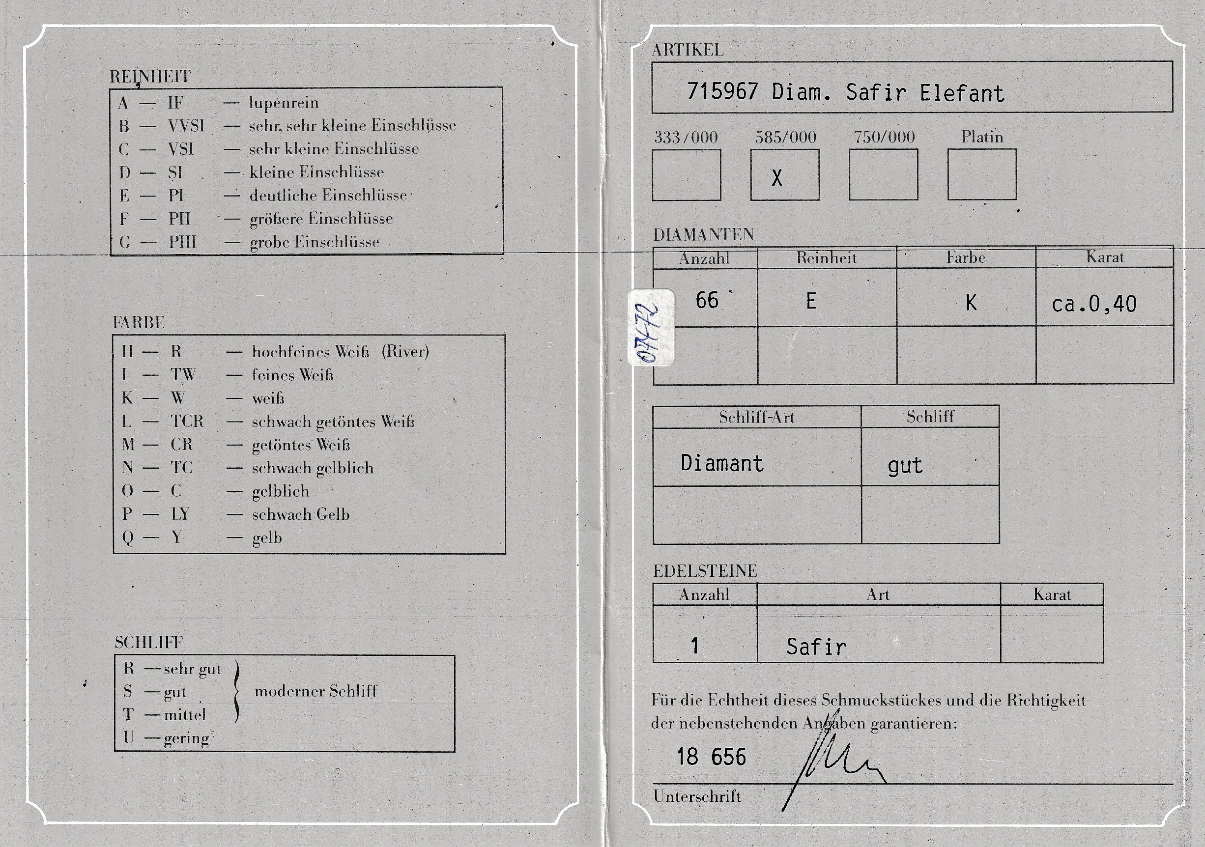 9.8 g, Schmuckpass anbei Schätzpreis: 2600, - EUR