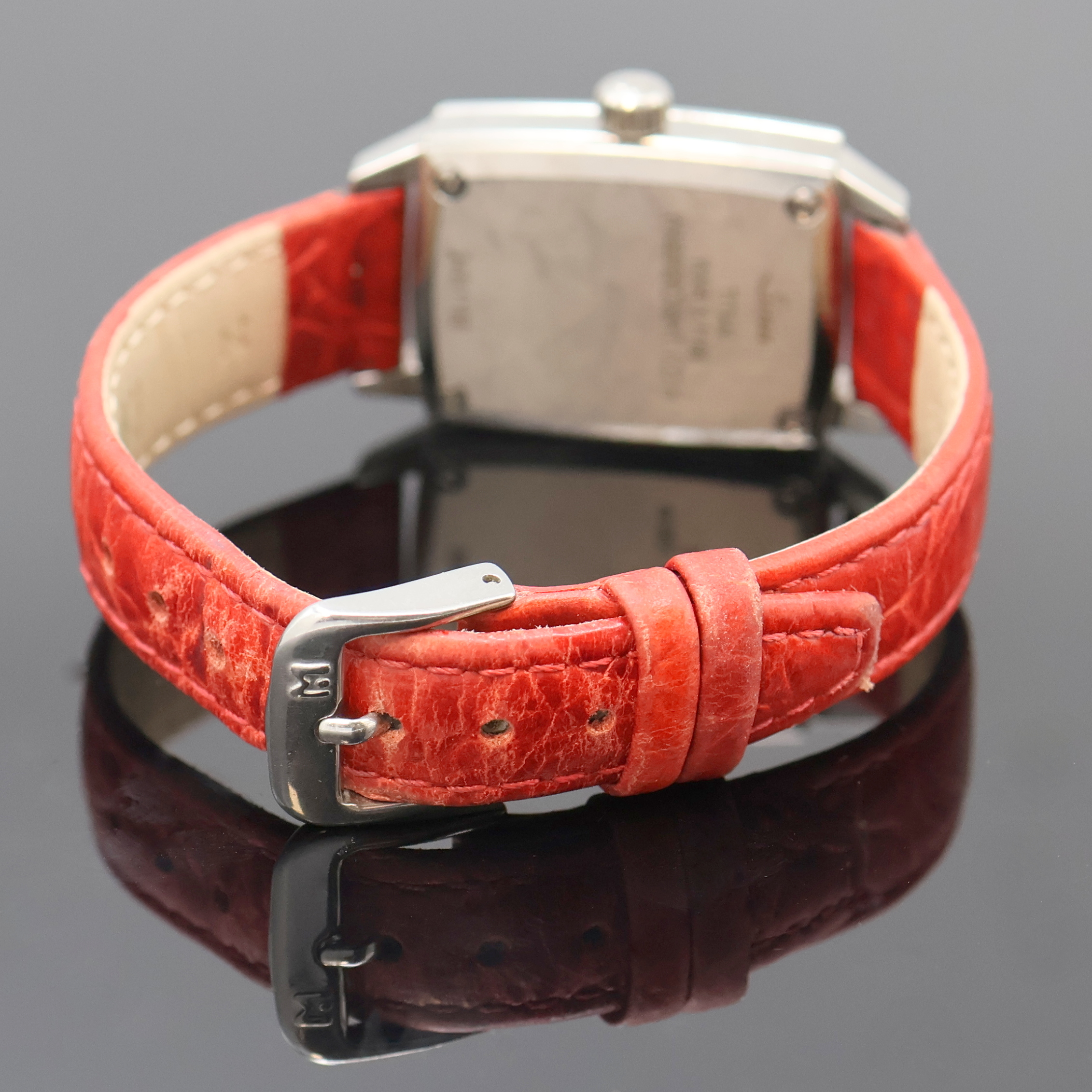 rechteck. Geh. m. l. gewölbten Seiten, Saphirglas, Boden 4-fach verschr., schwarz.