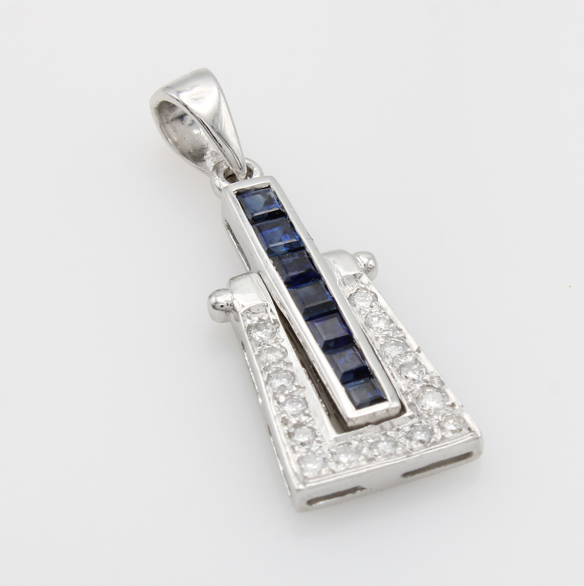 Anhänger mit Saphiren und Brillanten, WG 750/000, Brill. zus. ca. 0.30 ct feines Weiß/vs- si, 7 eingeschl. Saphire, bewegl. gearb. Schätzpreis: 1000, - EUR