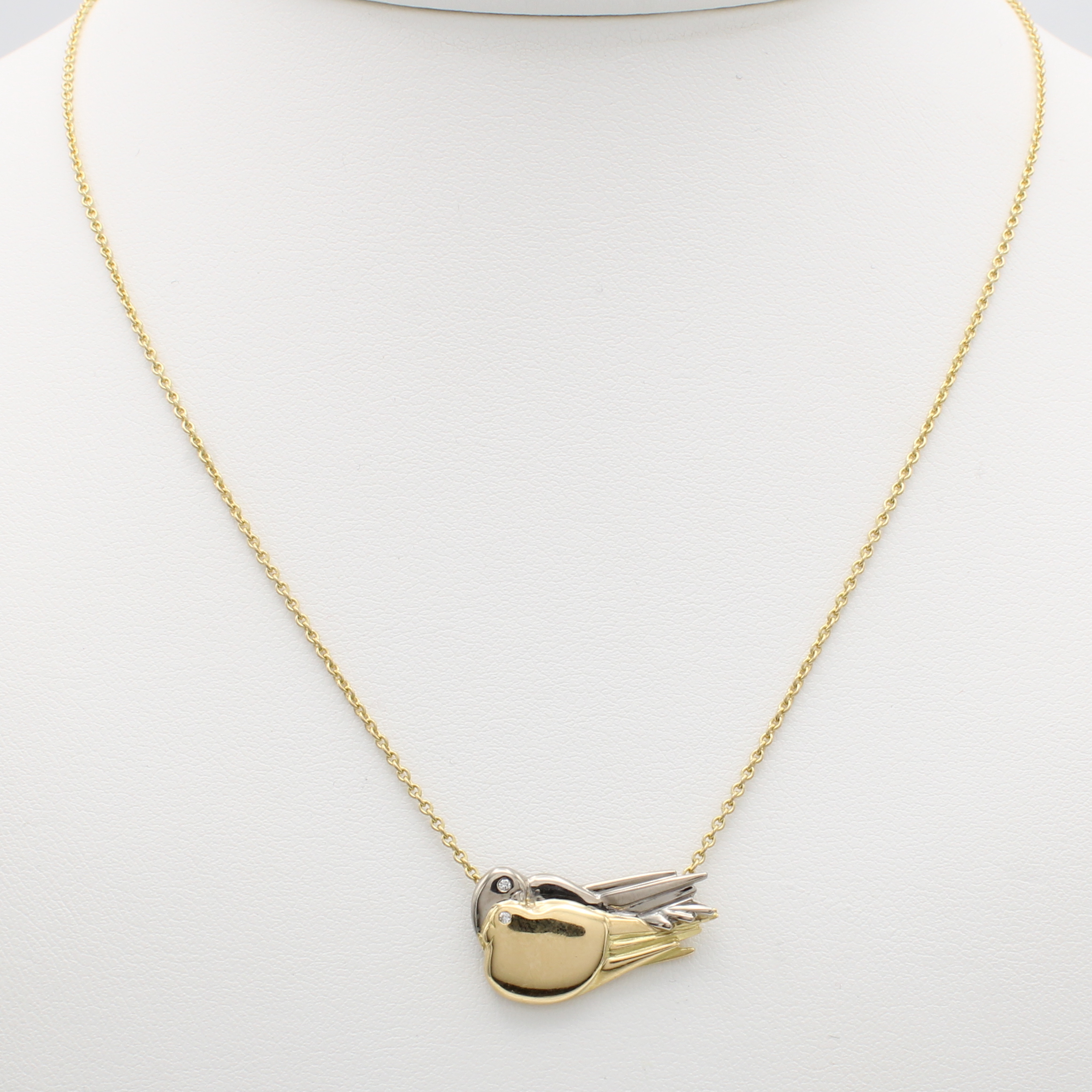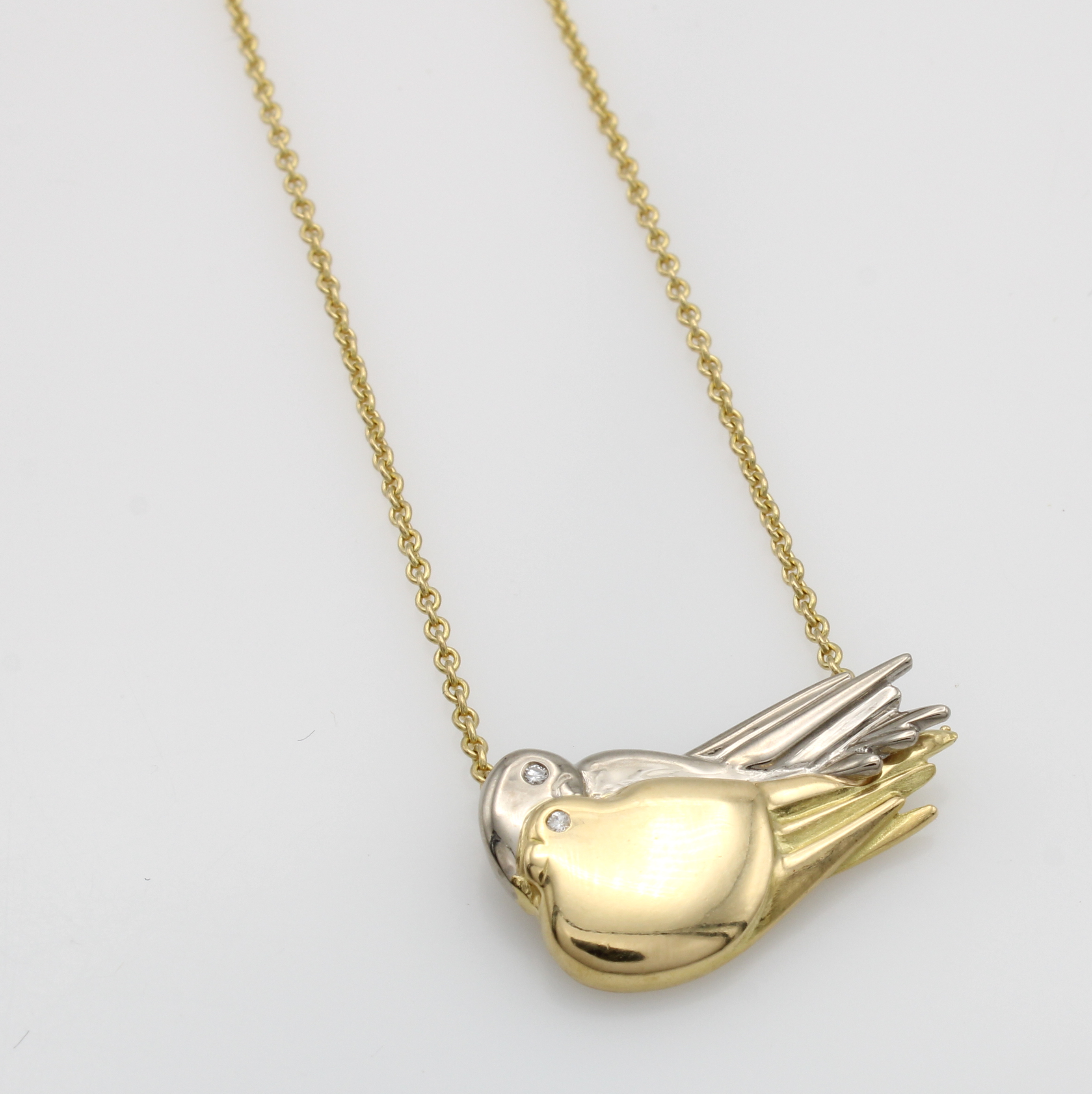 Collier "Vögel" mit Diamanten, GG/WG 750/000, Diamanten zus. ca. 0.02 ct feines Weiß/vs, L. ca. 40 cm Schätzpreis: 1400, - EUR