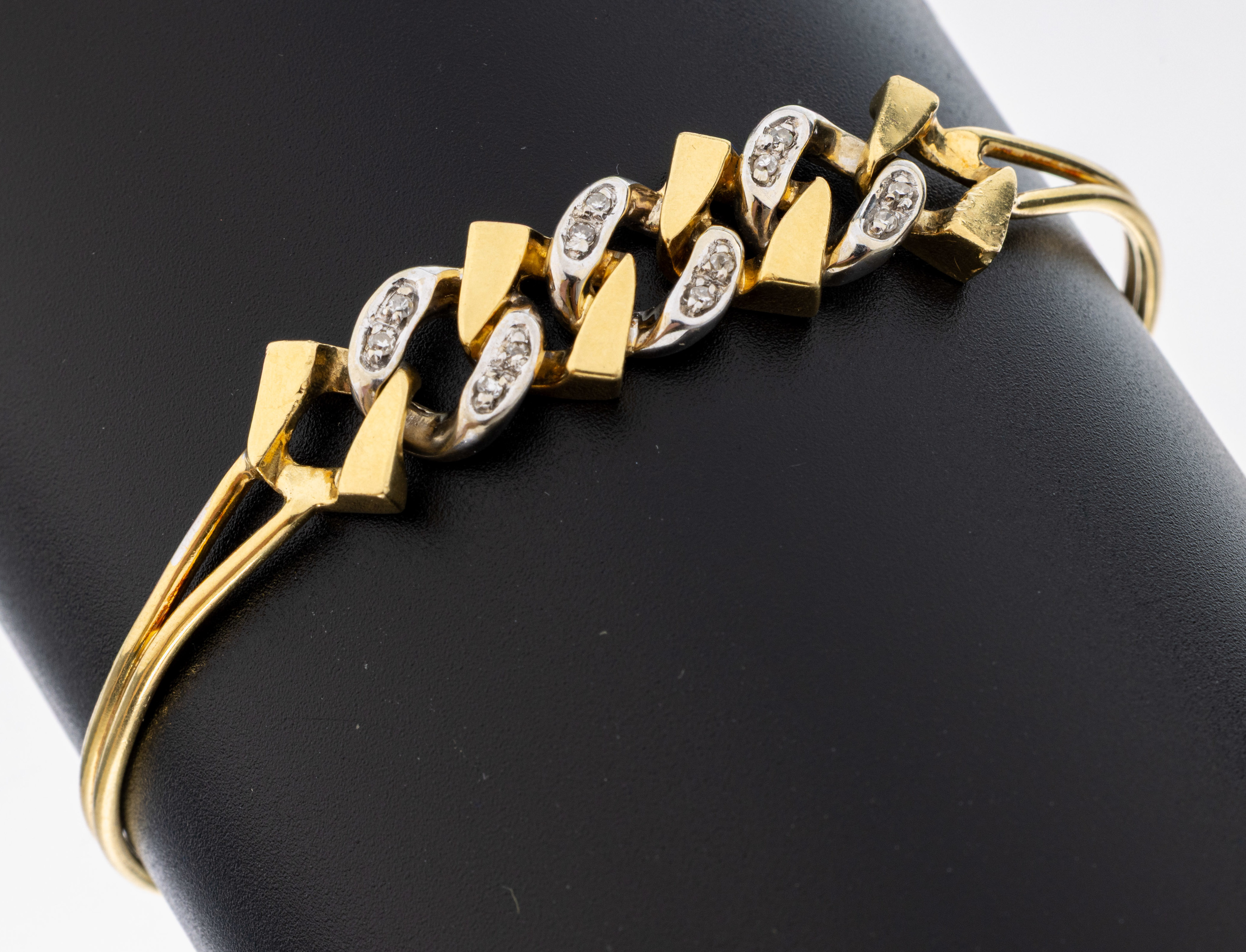 18 kt Gold Diamant-Armreif, GG/WG 750/000, Kopf in Form von Kettengliedern, 12 in