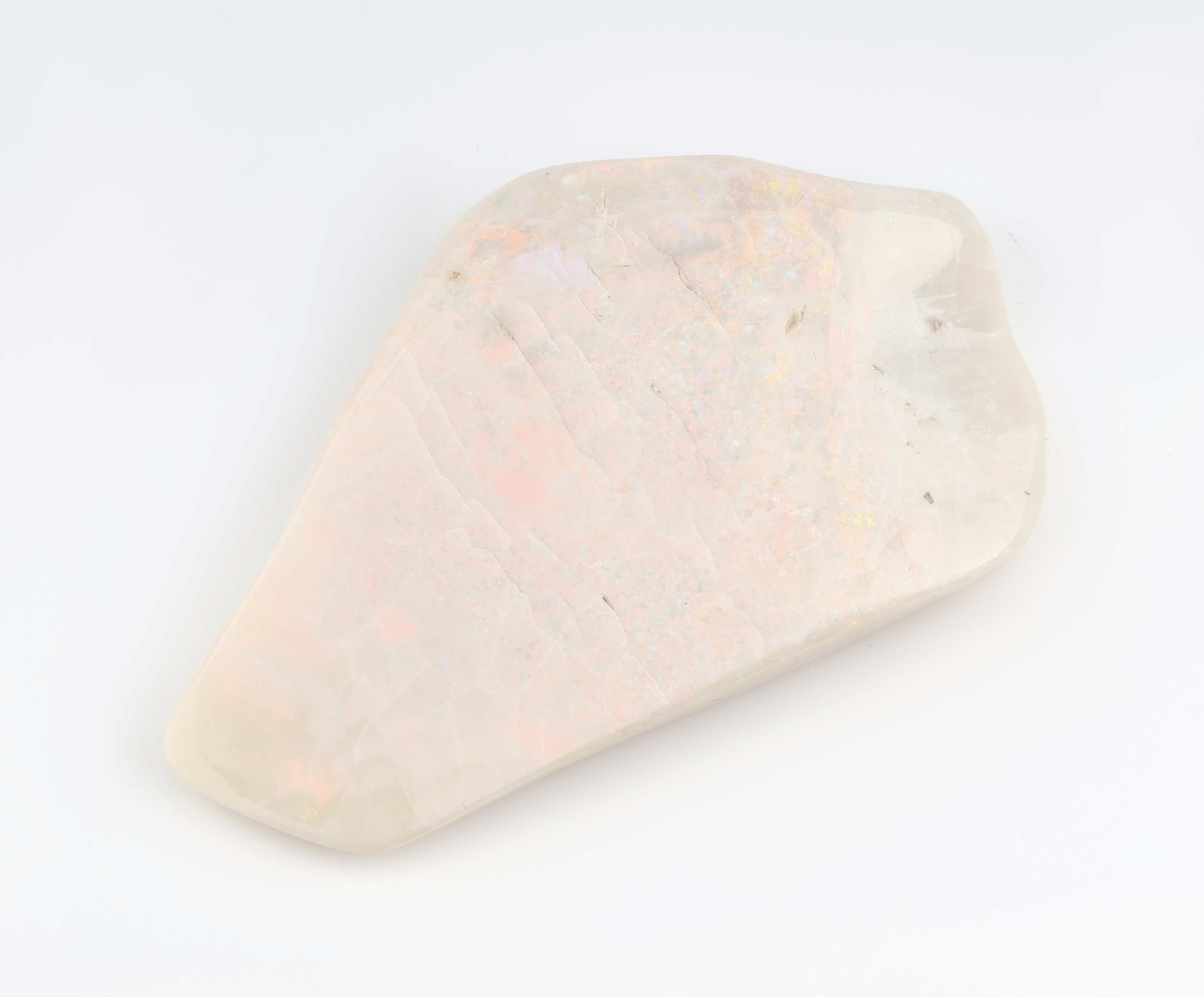 Opal-Briefbeschwerer, Vollopal, ca. 739.55 ct, Farbspiel in Rot, Gelb, Grün und Blau, ca.11.5 x 7 cm, stark trockenrissig Schätzpreis: 5800, - EUR