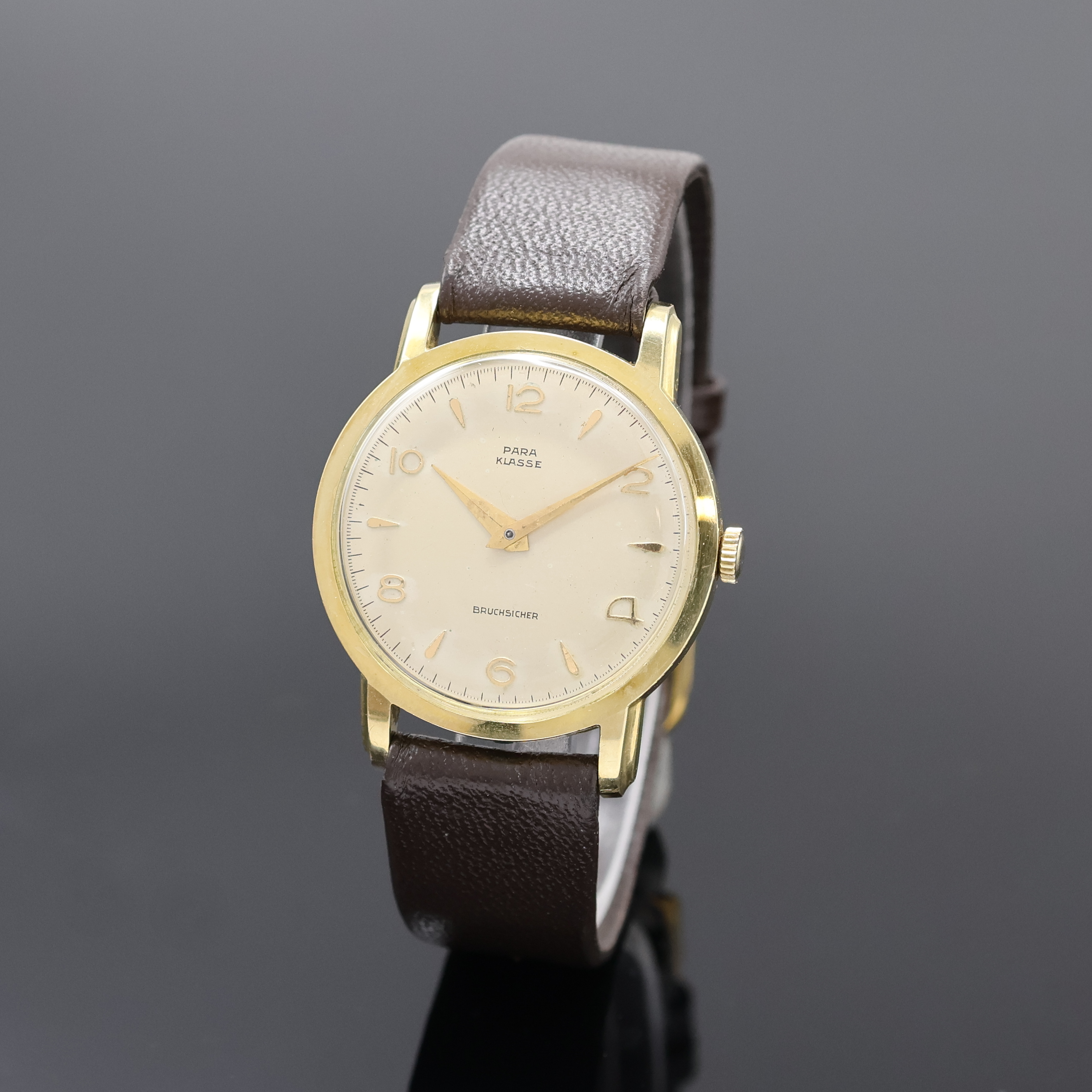 PARA Klasse Armbanduhr in GG 585/000, Schweiz um 1965, Handaufzug, Boden aufgedr.,