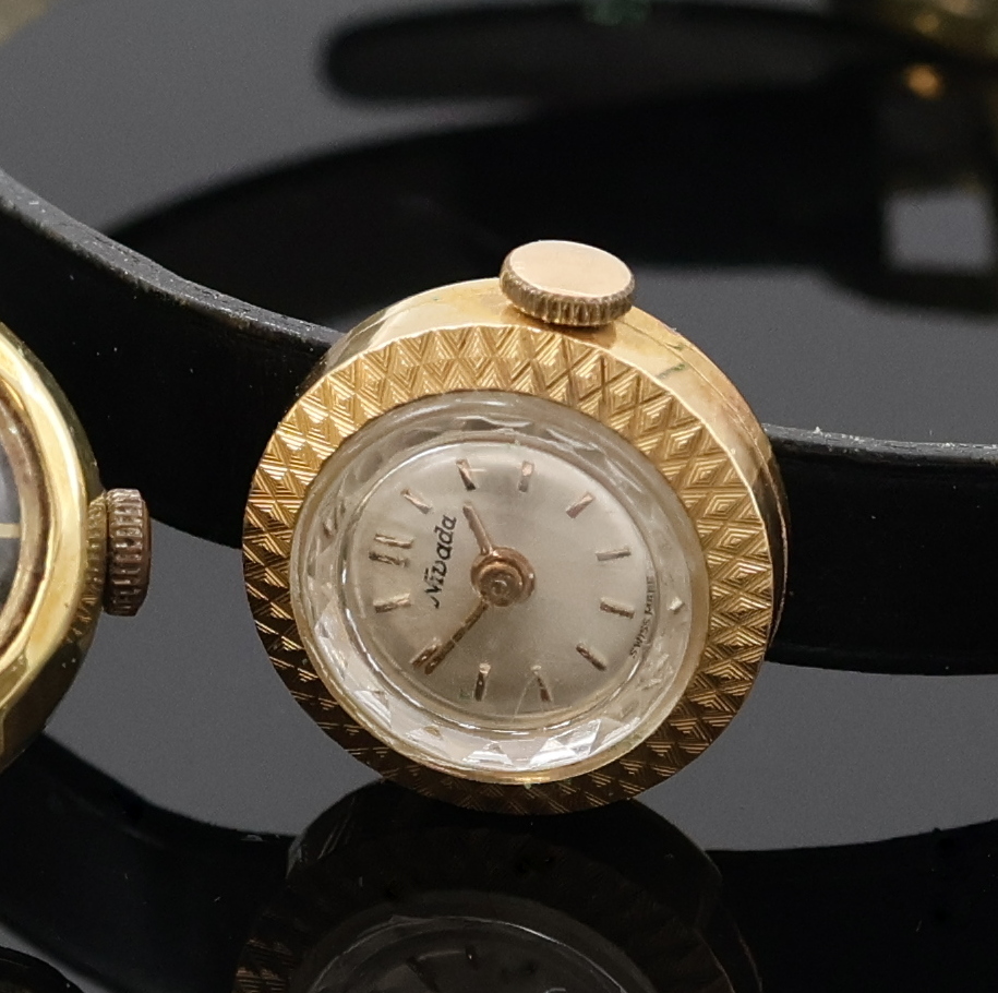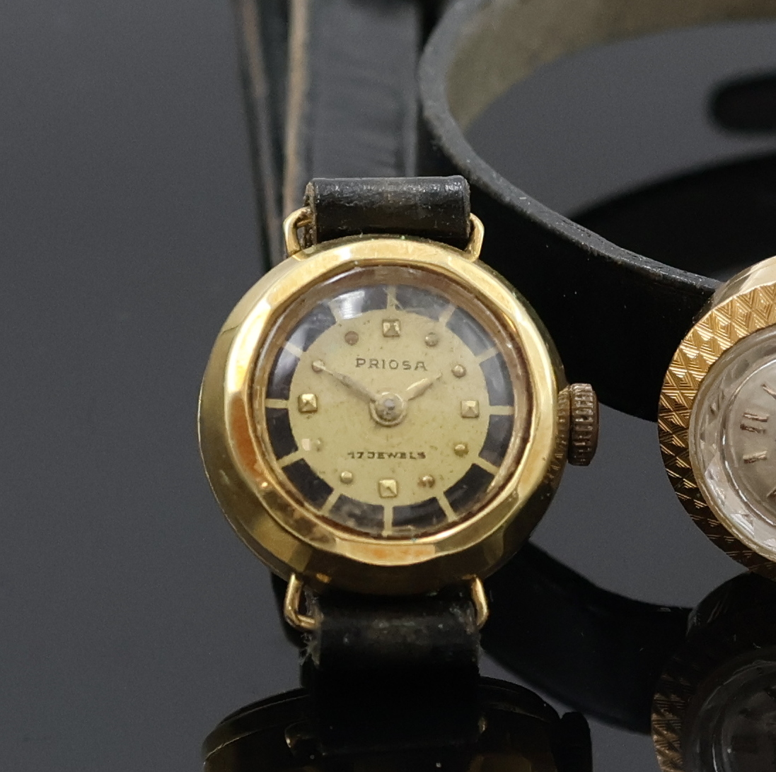 NIVADA und PRIOSA 2 Damenarmbanduhren in GG und RG 585/000, Schweiz um 1960, Handaufzug,
