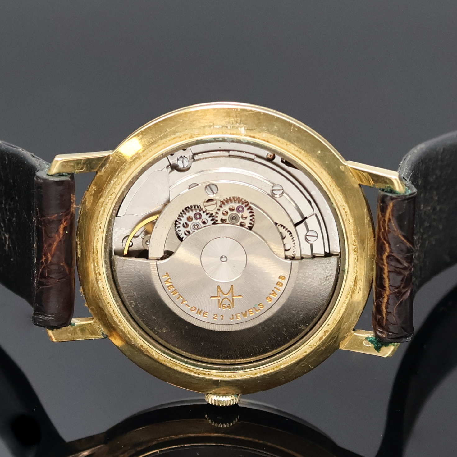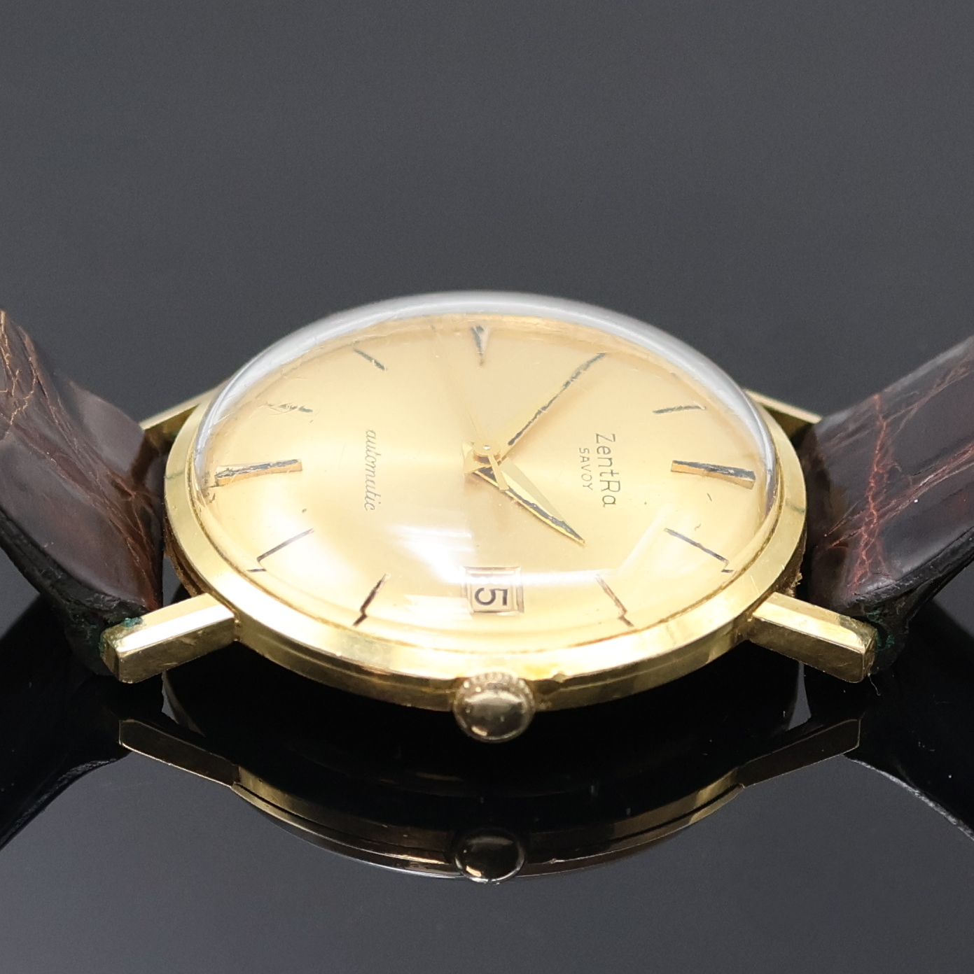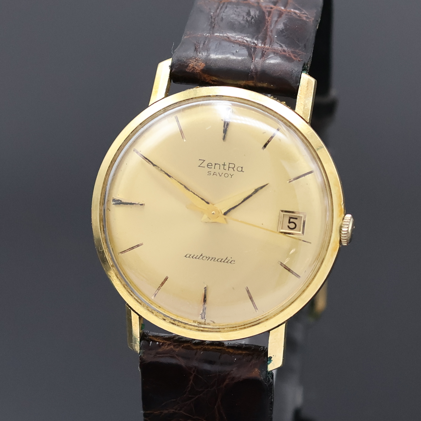 ZENTRA Savoy Armbanduhr in GG 585/000, Schweiz um 1960, Automatik, Boden u. Glasrand