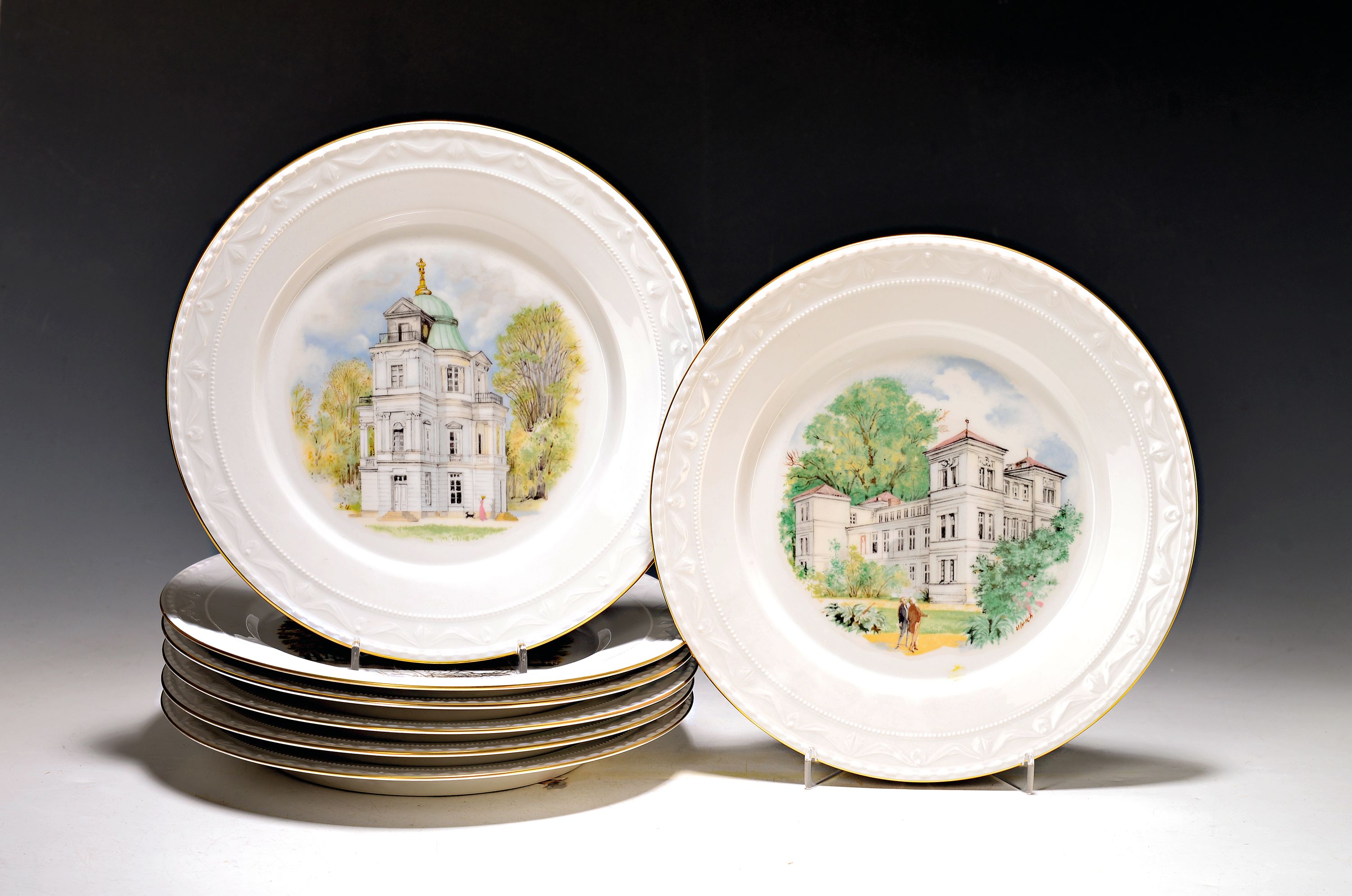7 Teller "Berliner Schlösser", Kurland, KPM Berlin, 2.Hälfte 20.Jh., Porzellan,
