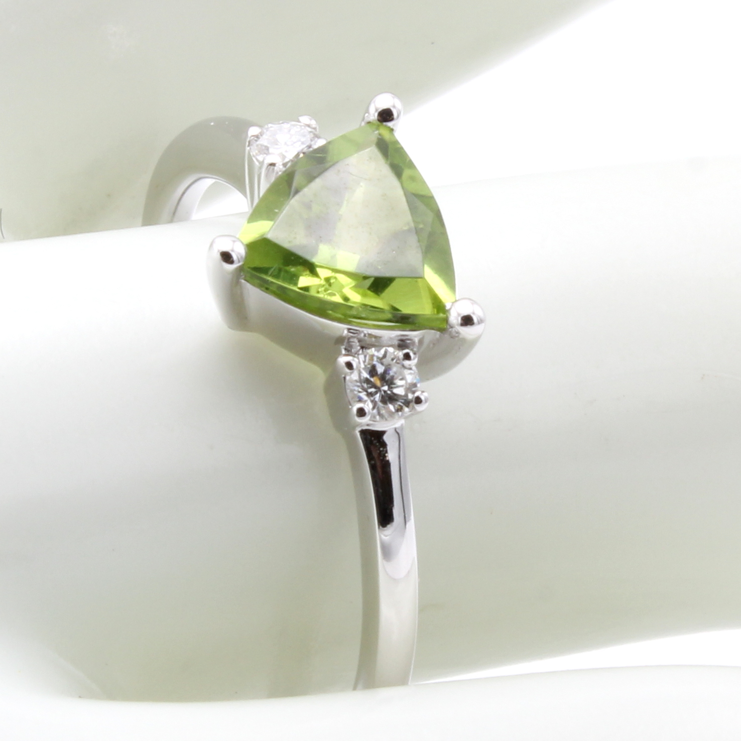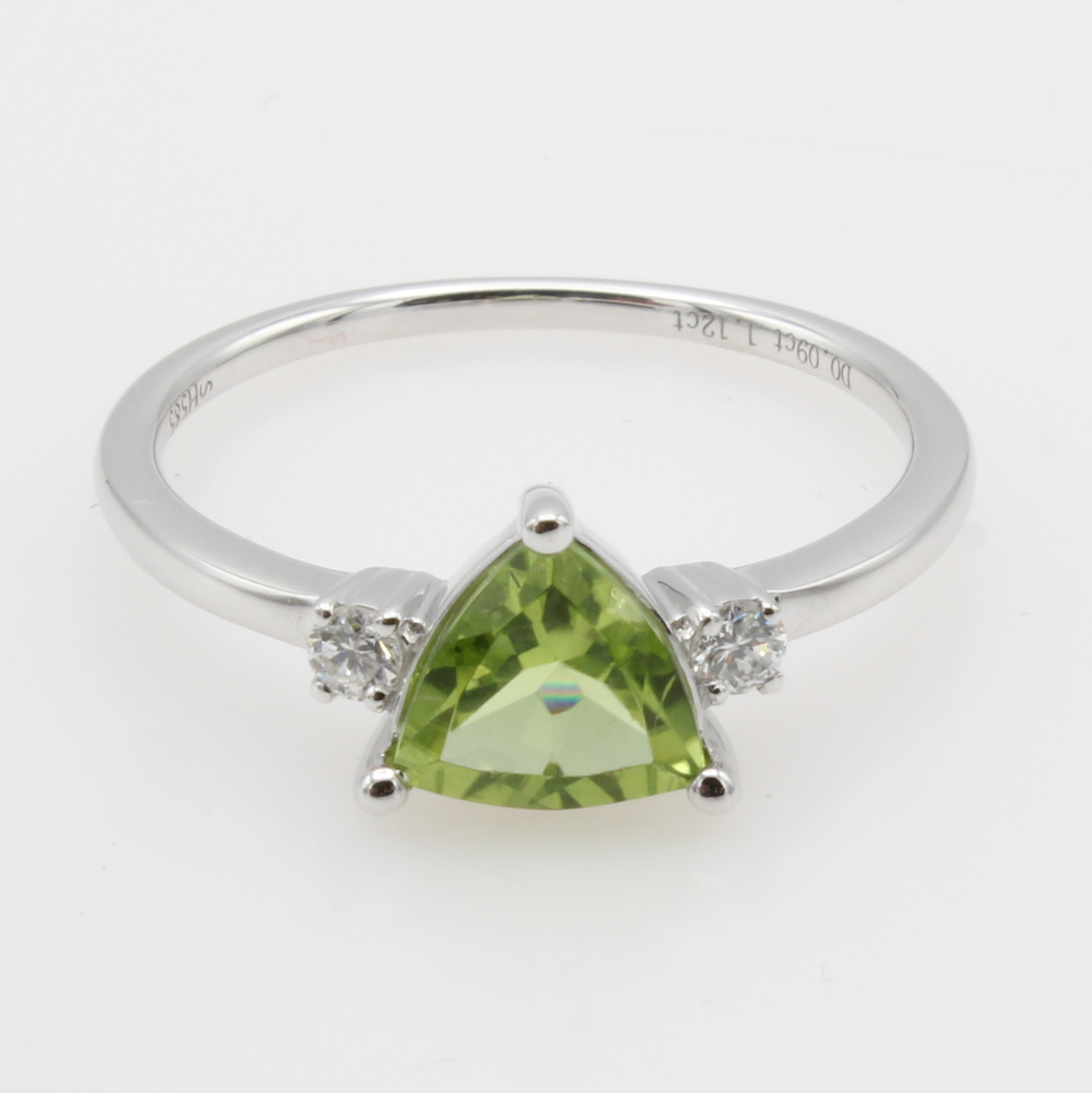 Ring mit Peridot und Brillanten, WG 585/000,Peridot ca. 1.12 ct, 2 Brill. zus. ca. 0.09 ctfeines Weiß/vs, RW ca. 55 Schätzpreis: 1270, - EUR