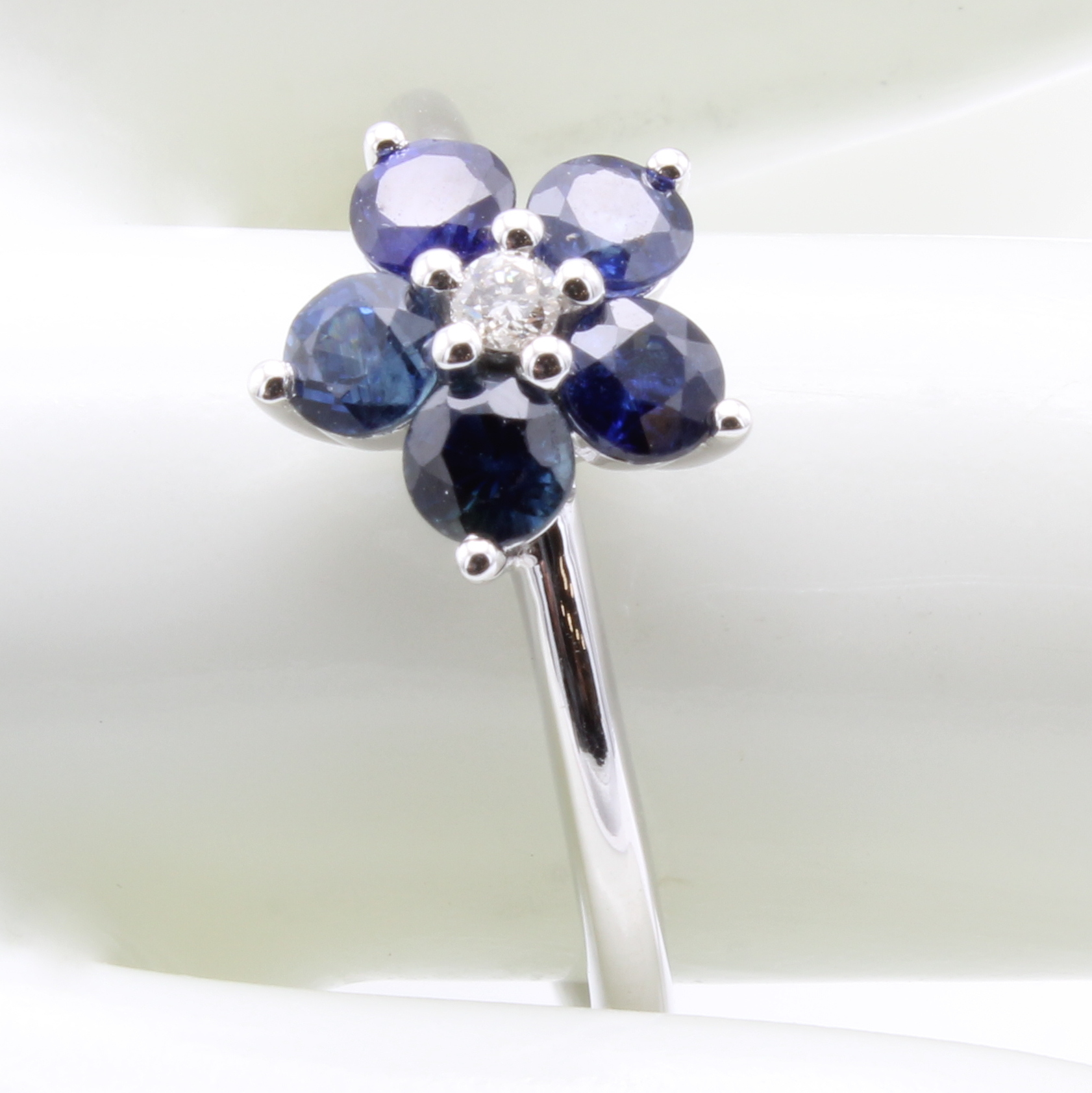 Ring mit Brillant und Saphiren, WG 585/000, 5 Saphire zus. ca. 1.07 ct, Brill. mittig gef.ca. 0.02 ct Weiß/si, RW ca. 55 Schätzpreis: 1040, - EUR