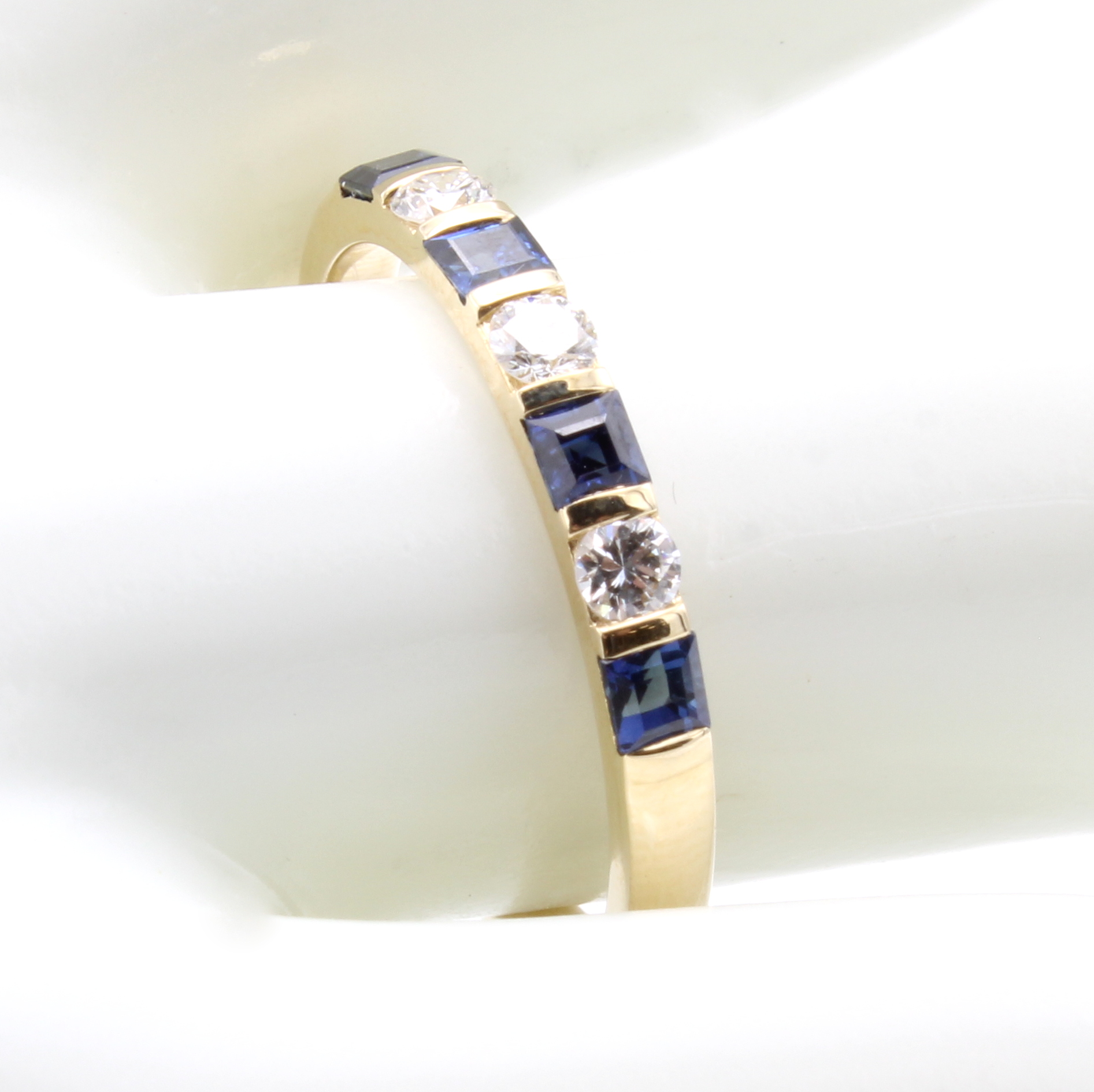 Ring mit Saphiren und Brillanten, GG 585/000, 4 Saphircarrées zus. ca. 0.41 ct, 3 Brill. zus. ca. 0.18 ct feines Weiß+/vs, RW ca. 55 Schätzpreis: 1290, - EUR